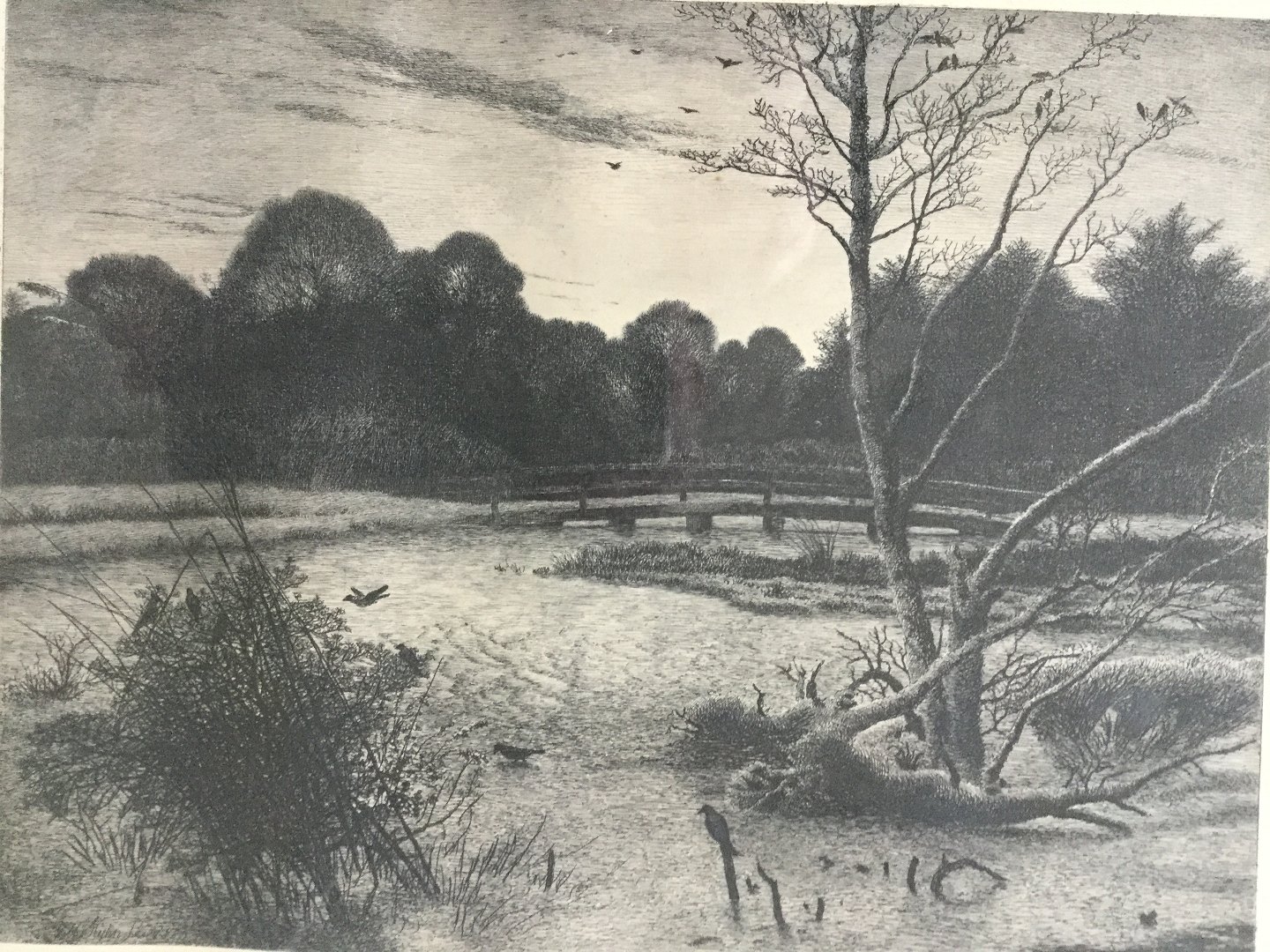 Radering af Vilhelm Kyhn - Vinterparti fra Bøllemosen 1885.