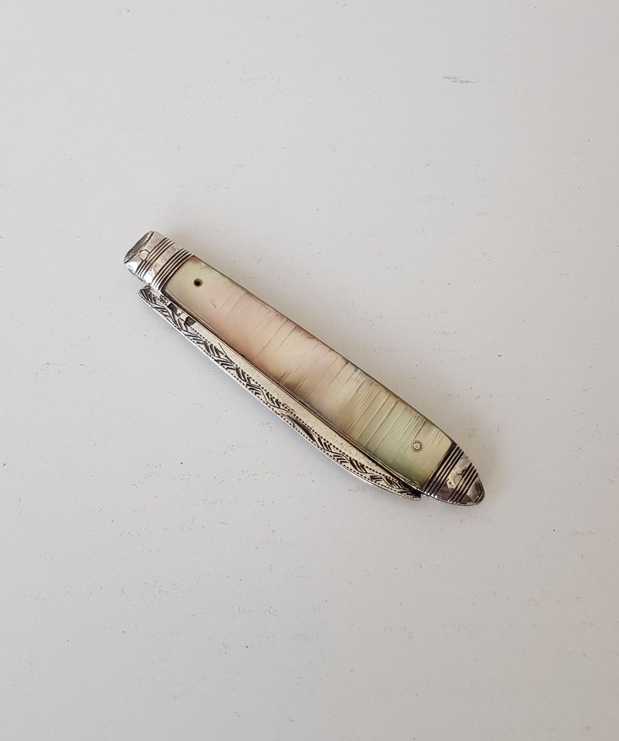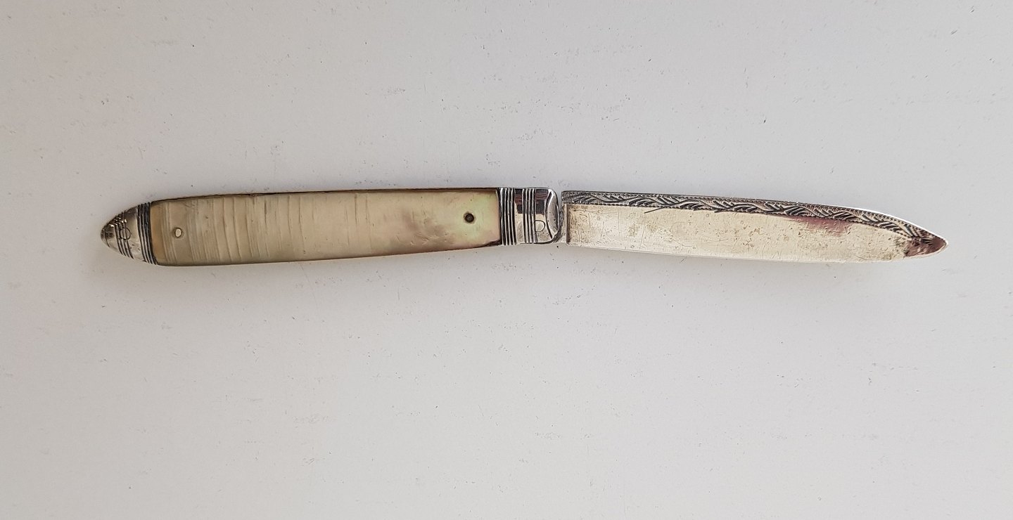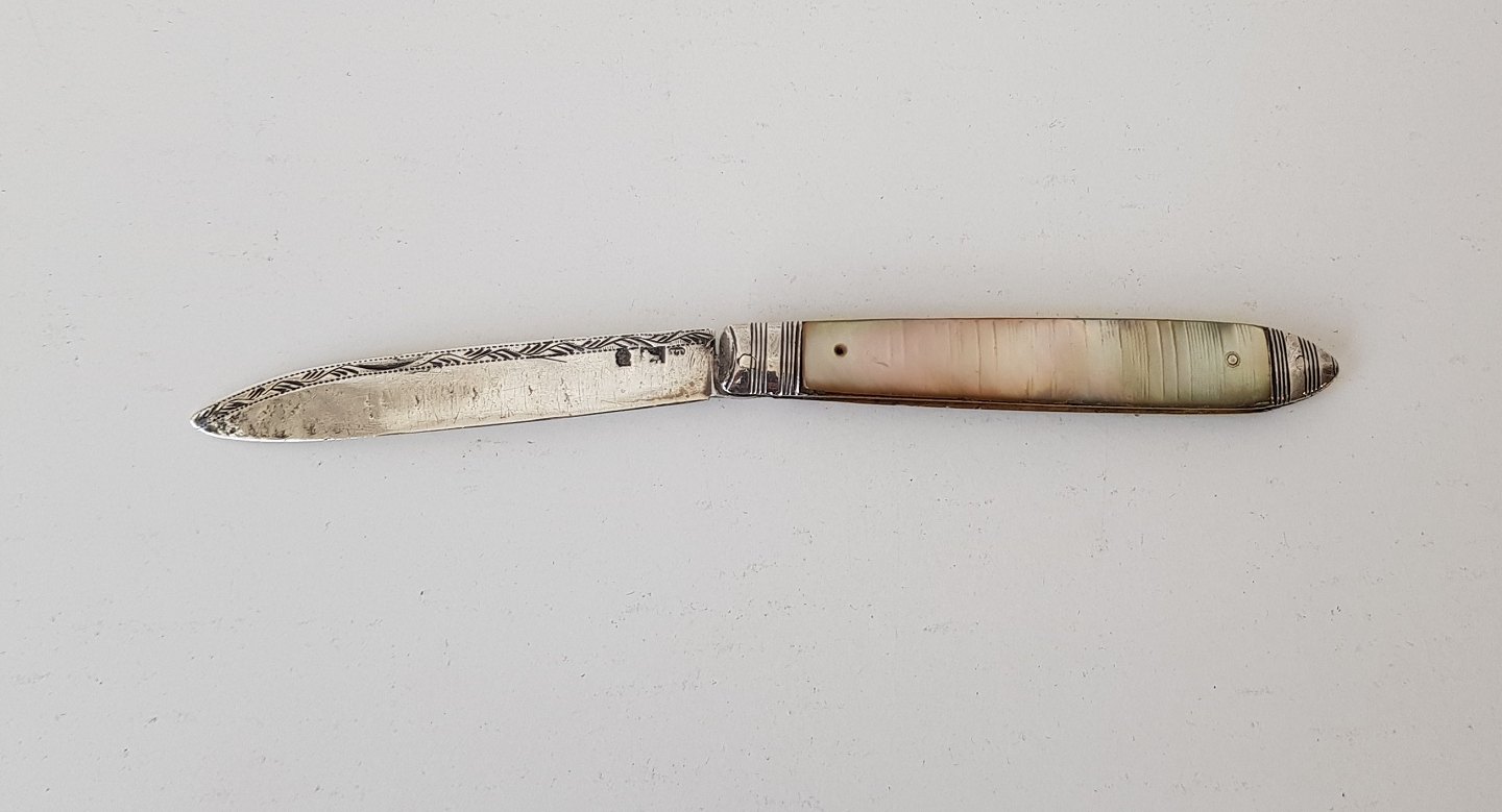 Engelsk lommekniv i sølv og perlemor