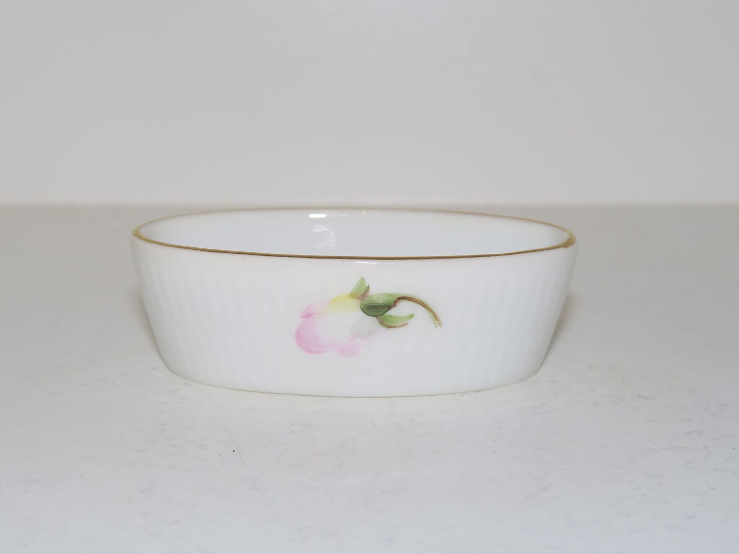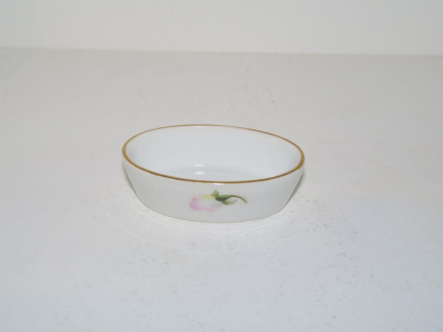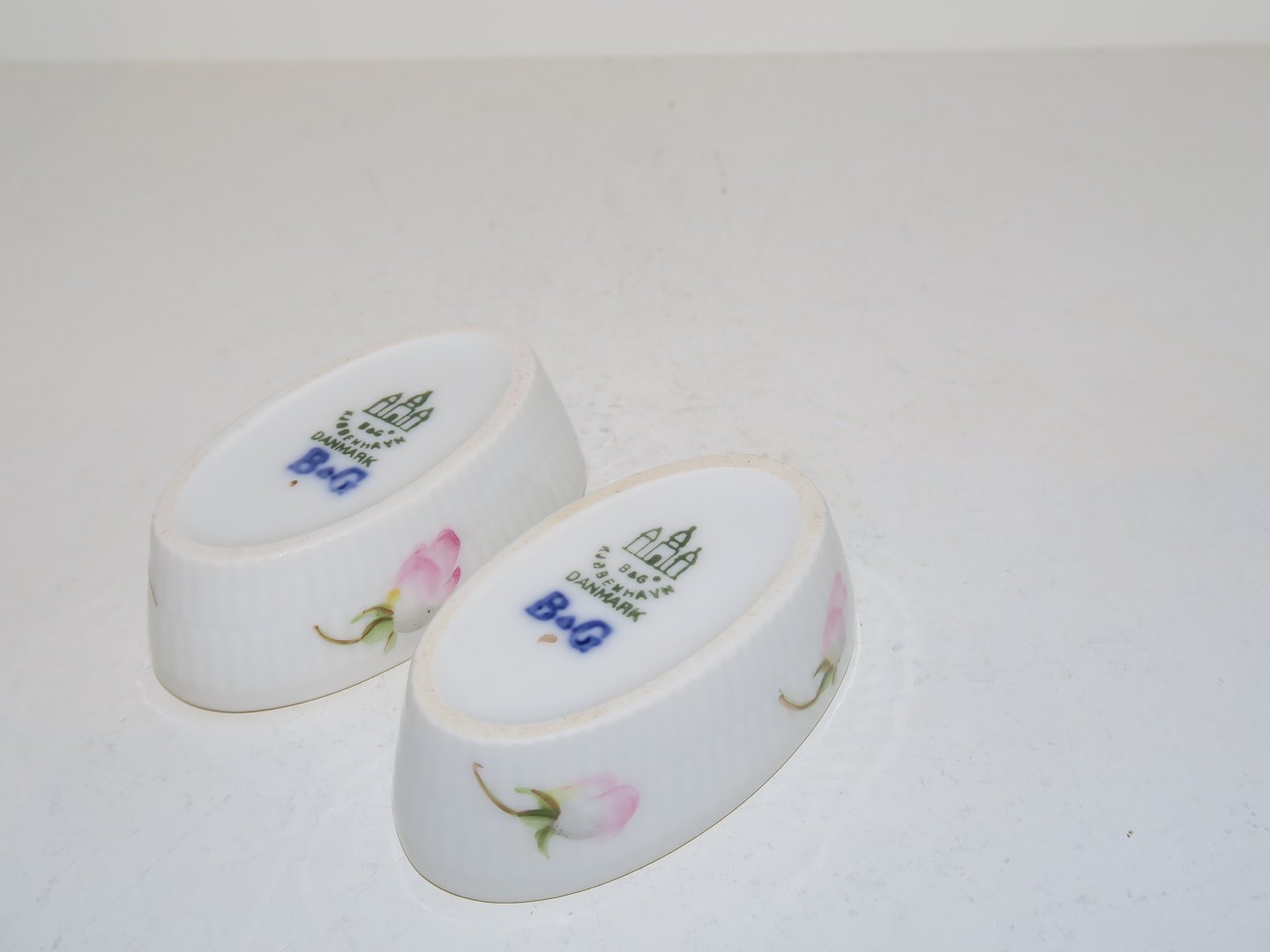Bing & Grøndahl Prinsesse Margrethe, ovalt saltkar dekoreret med lyserøde æbleblomster.