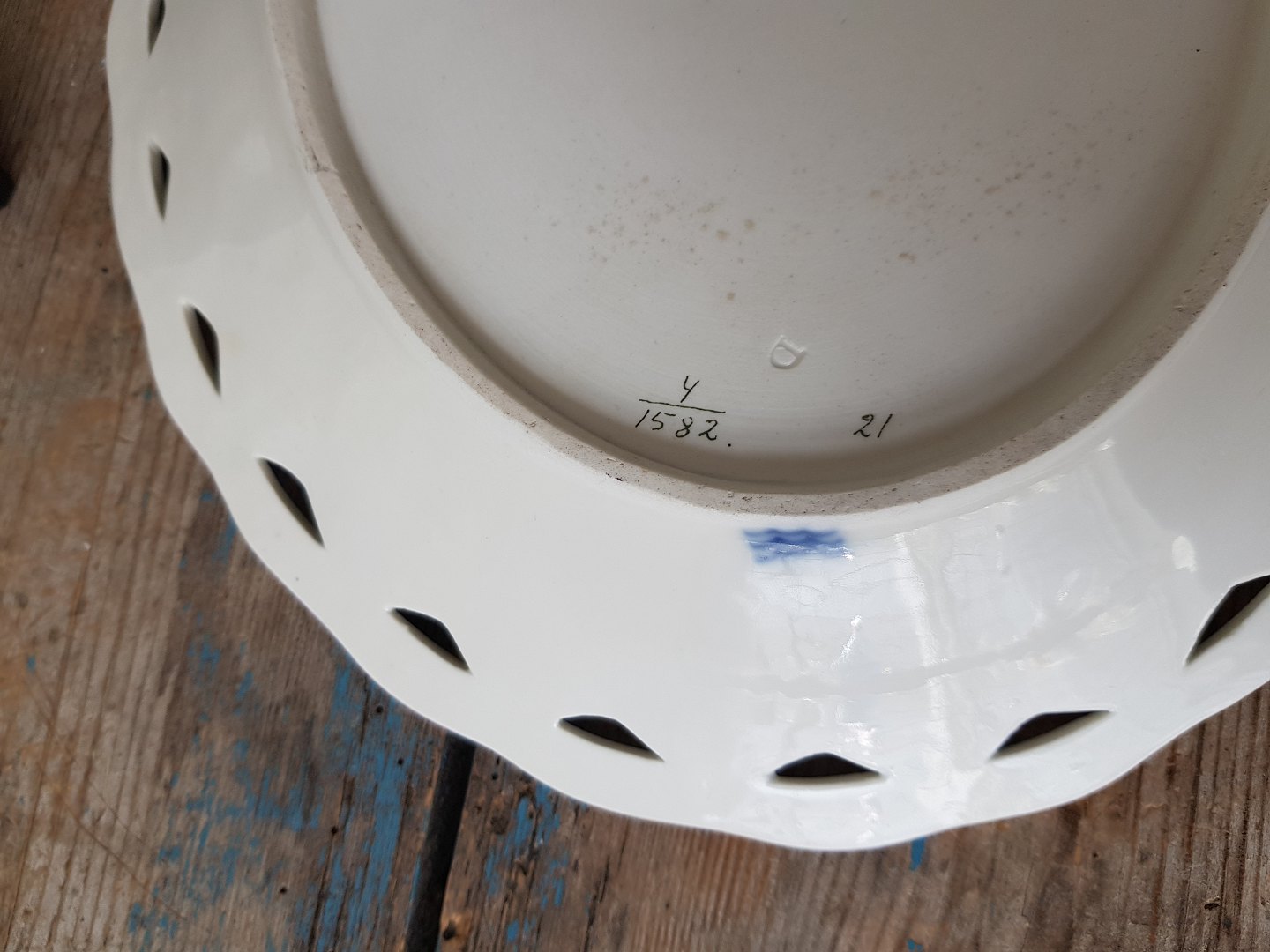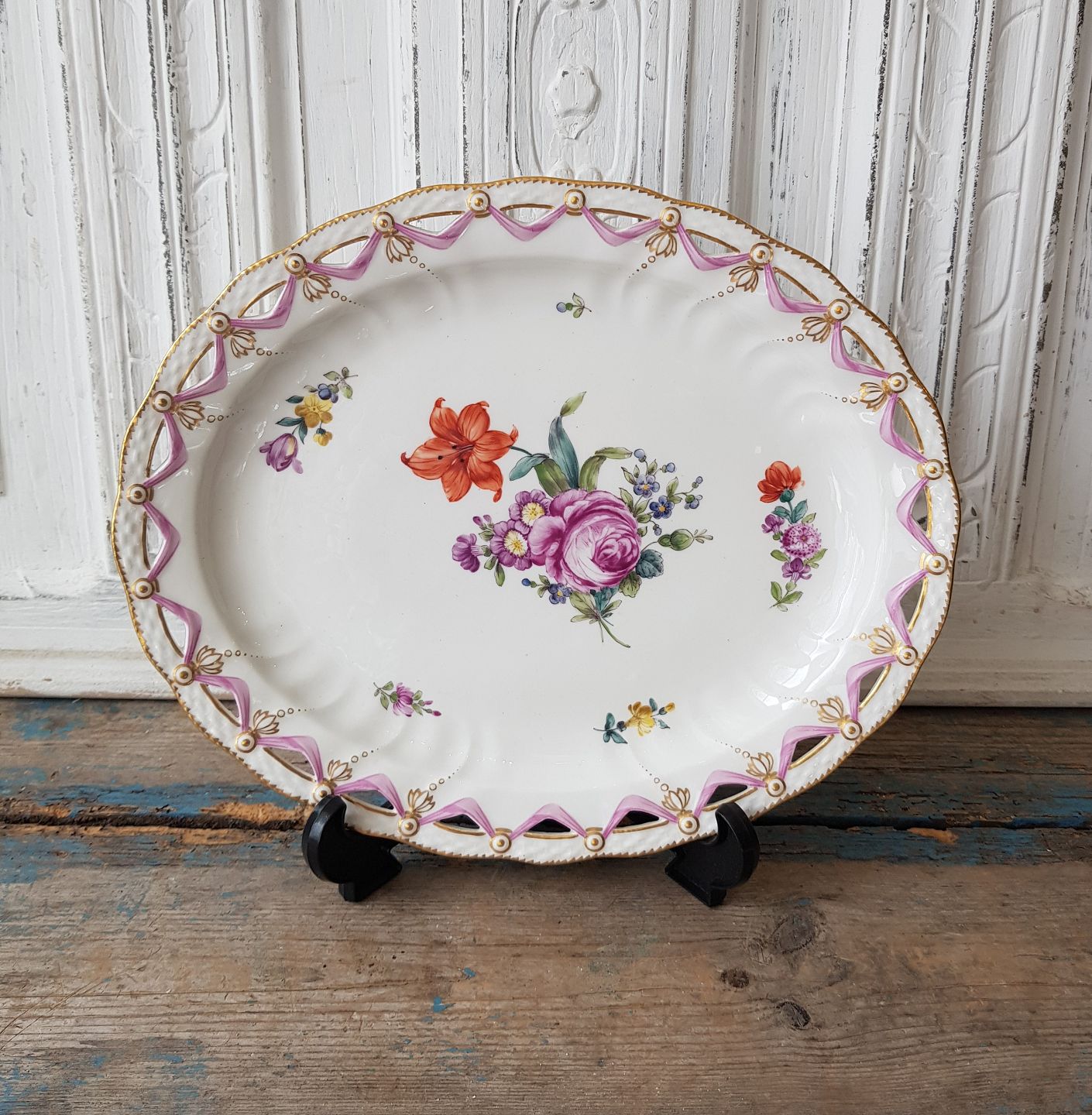 Royal Copenhagen Fuld Saksiskblomst fad med gennembrudt kant no. 1582 |