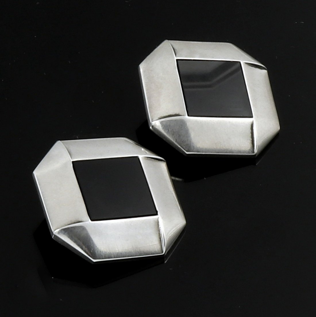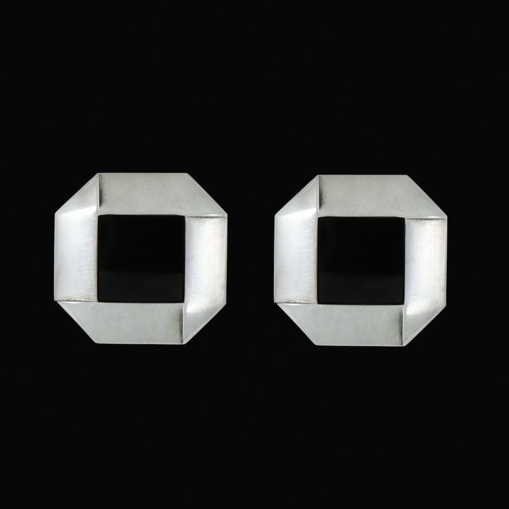 Georg Jensen. Øreklips i sterling sølv med Onyx #209 - Piazza - Allan Scharff