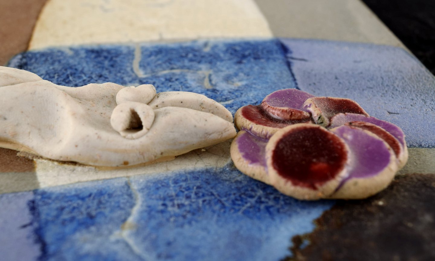 Unika vægrelief i keramik fra 1972. Abstrakt motiv.