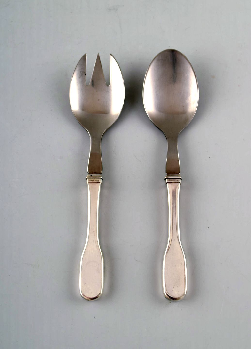 Hans Hansen sølvbestik Susanne salatsæt i sterlingsølv og rustfrit stål.