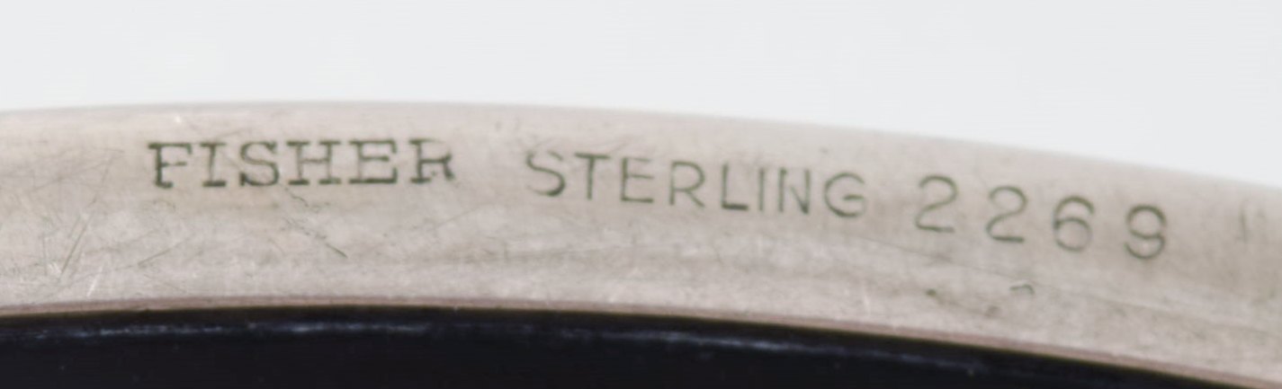 Fisher Silversmiths (Co.) serveringsbakke i sterlingsølv og ebonit.