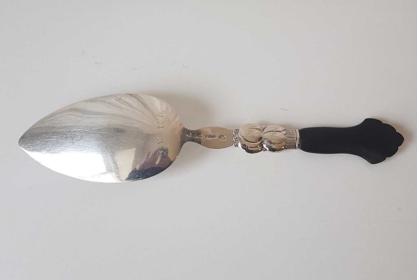 Serveringsspade i sølv med håndtag i træ fra 1930 - 27,8 cm.