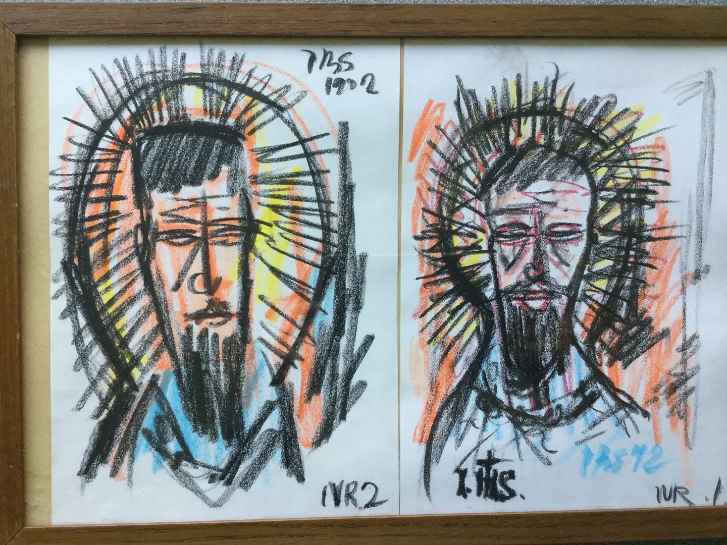 Oliekridt af Peder Brøndum Sørensen - 2 udkast til Kristusbilleder 1972.
