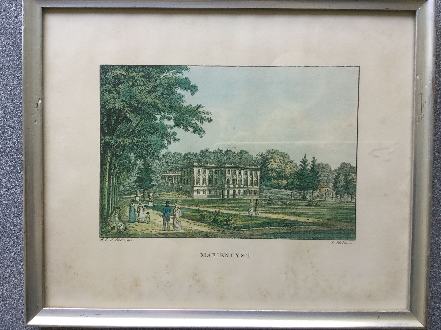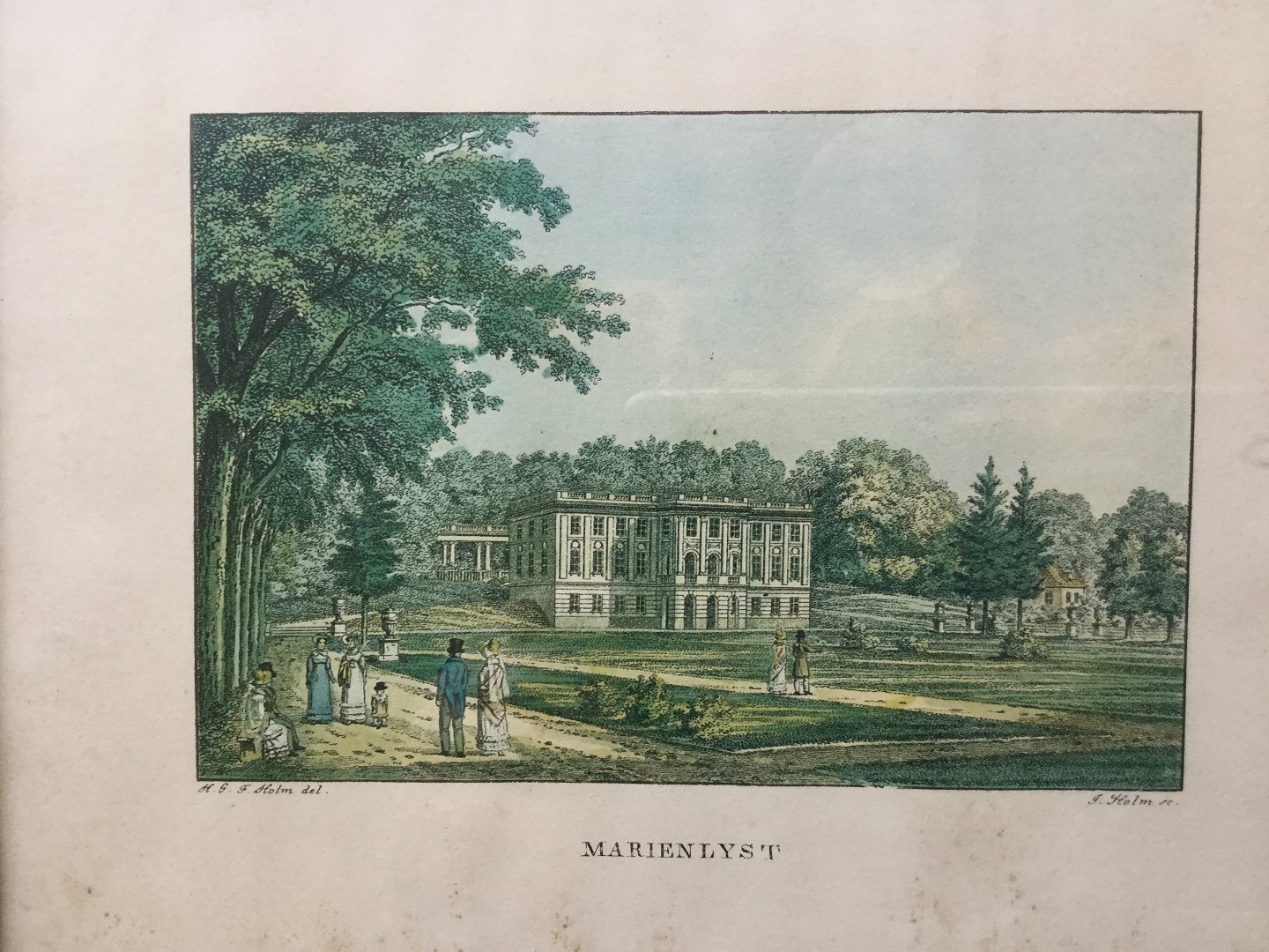 Tryk efter kobberstik af Jens Holm efter tegning af H.G.F. Holm - Marienlyst Slot.