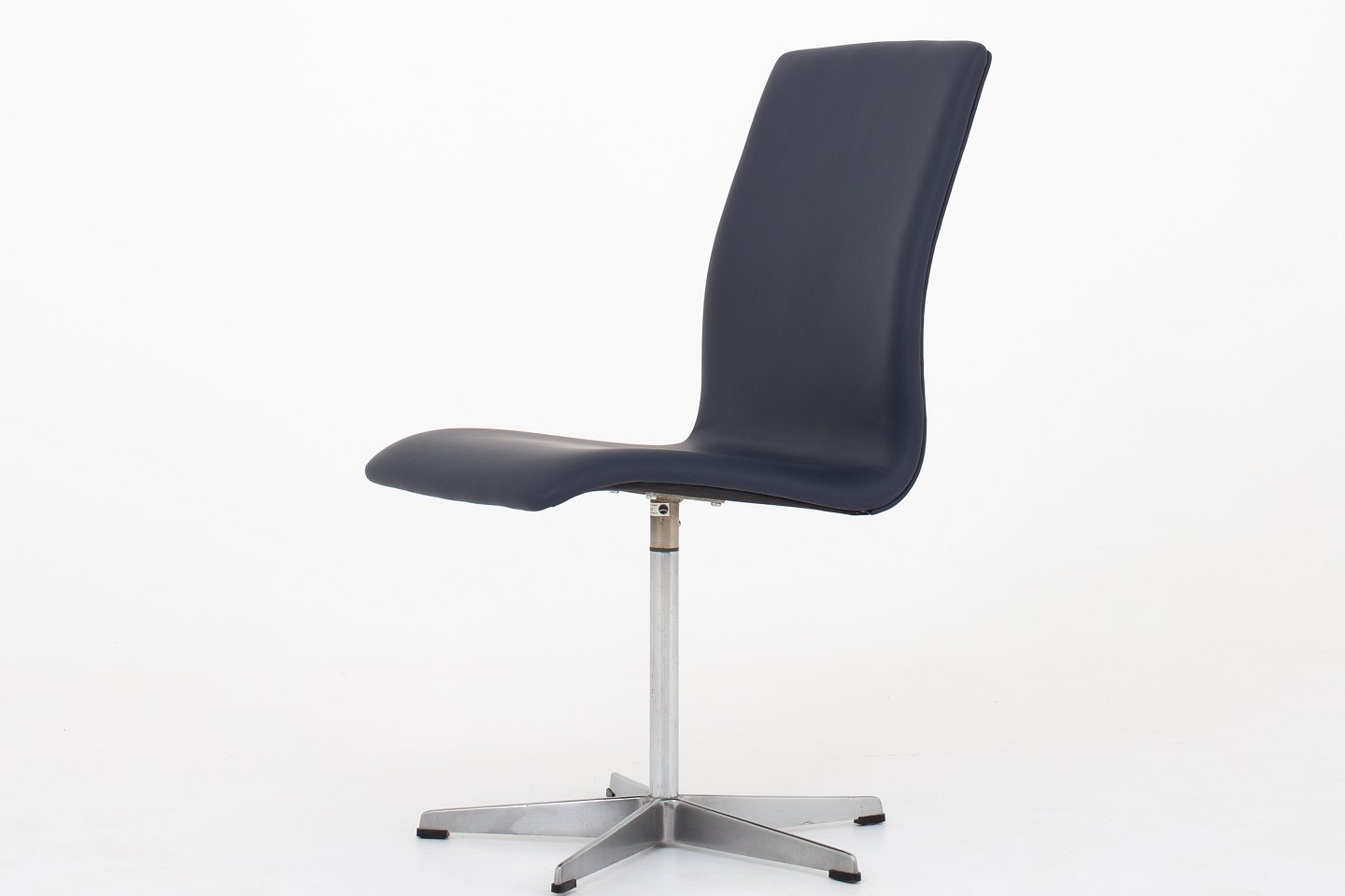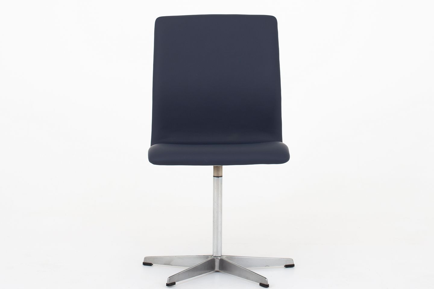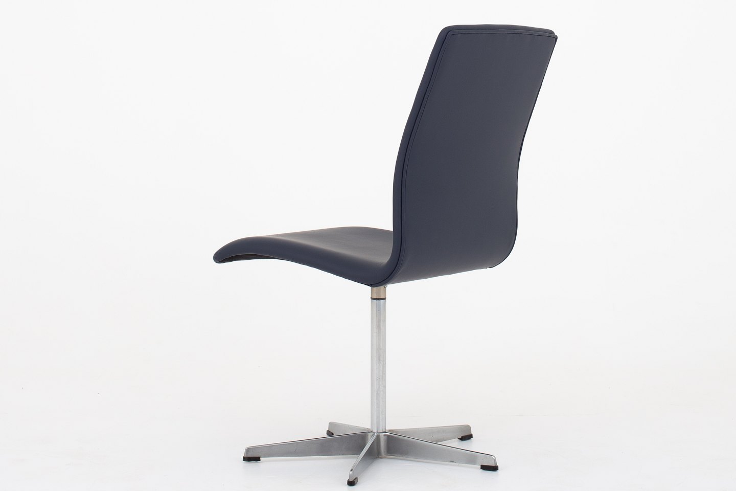 AJ 3171 Oxford-stol nybetrukket i mørkeblåt læder (Savanne Royal Blue) på stel af aluminium. KLASSIK tilbyder polstring af stolen med stof eller læder efter eget ønske. Kontakt os venligst for mere information.