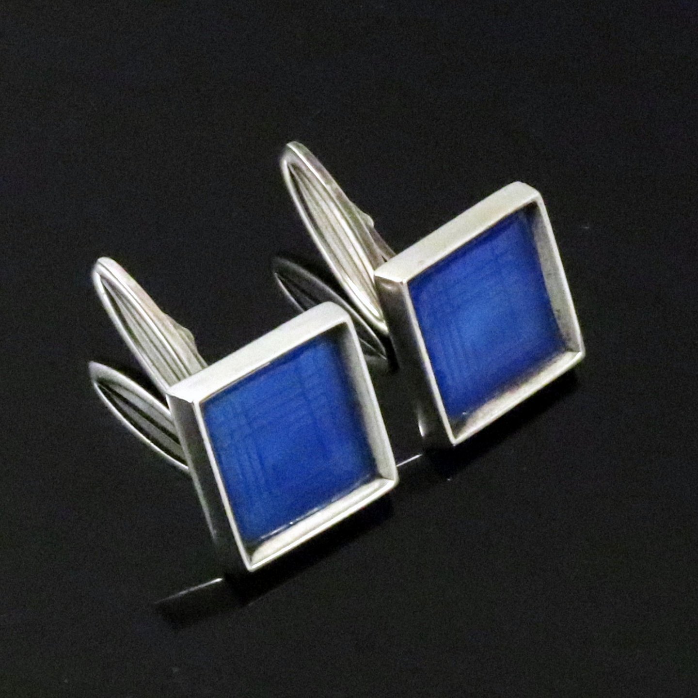 Hans Hansen. Manchetknapper i sterling sølv med blå emalje. #644E