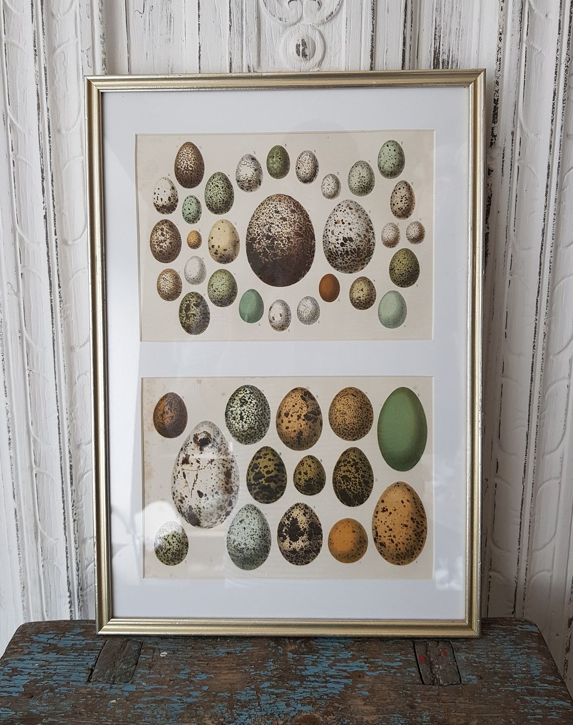 1800s hand-colored print with eggs in beautiful silver frame