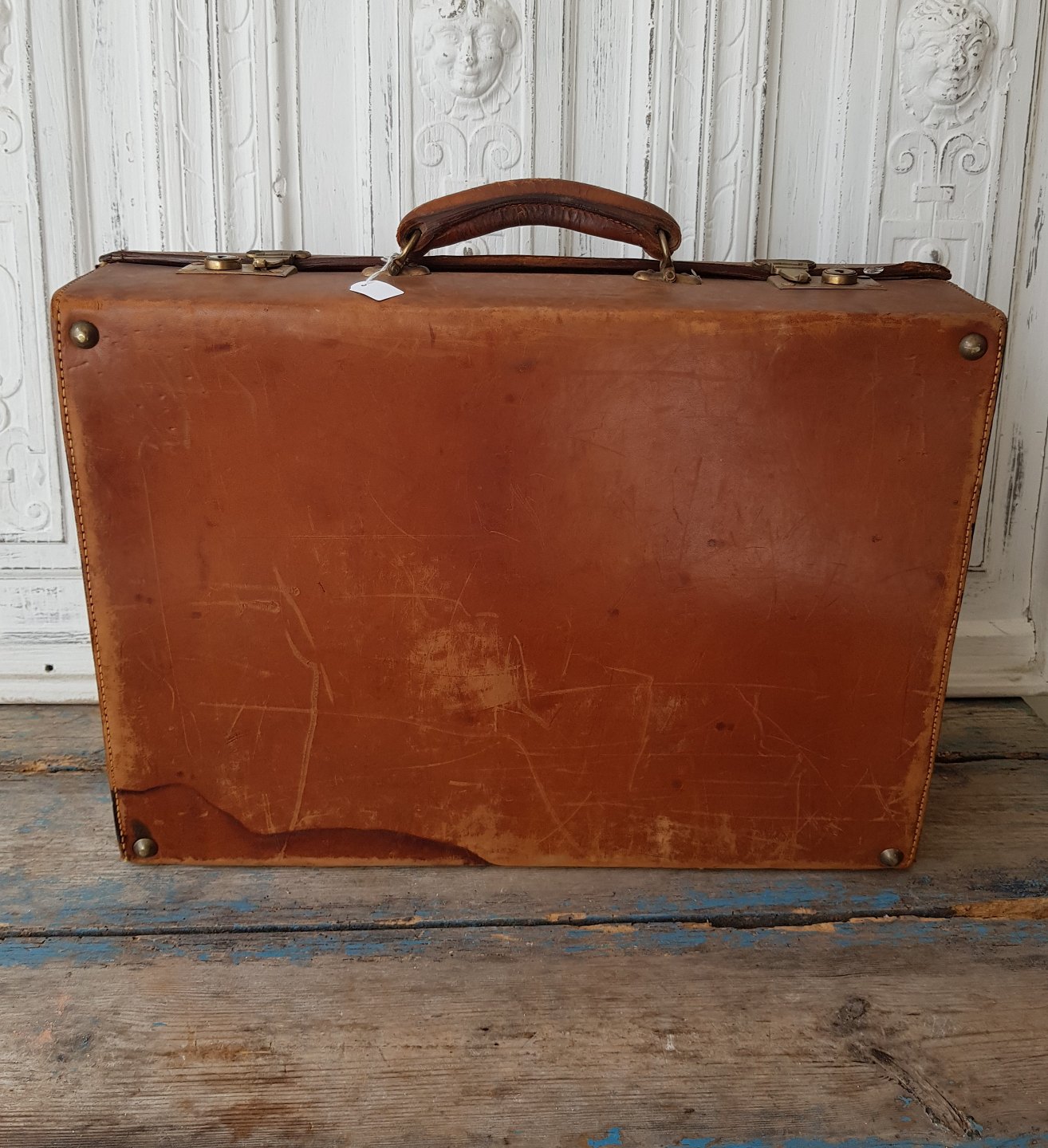 Vintage attachemappe i kernelæder med monogram "A.P."