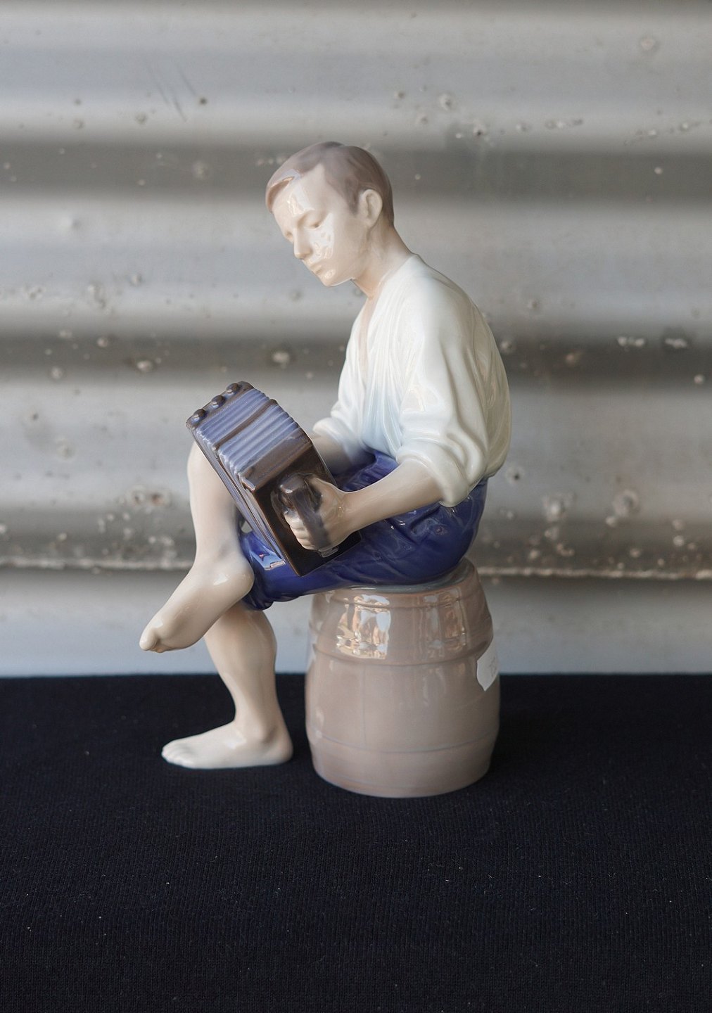 Figur i porcelæn med motiv af ung mand, der spiller på harmonika. Nr. 1661