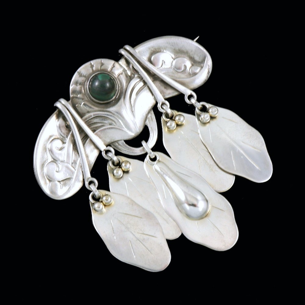 Georg Jensen Skønvirke Broche i 826S Sølv med Malakit. #14 - 1904-1908 stempler.