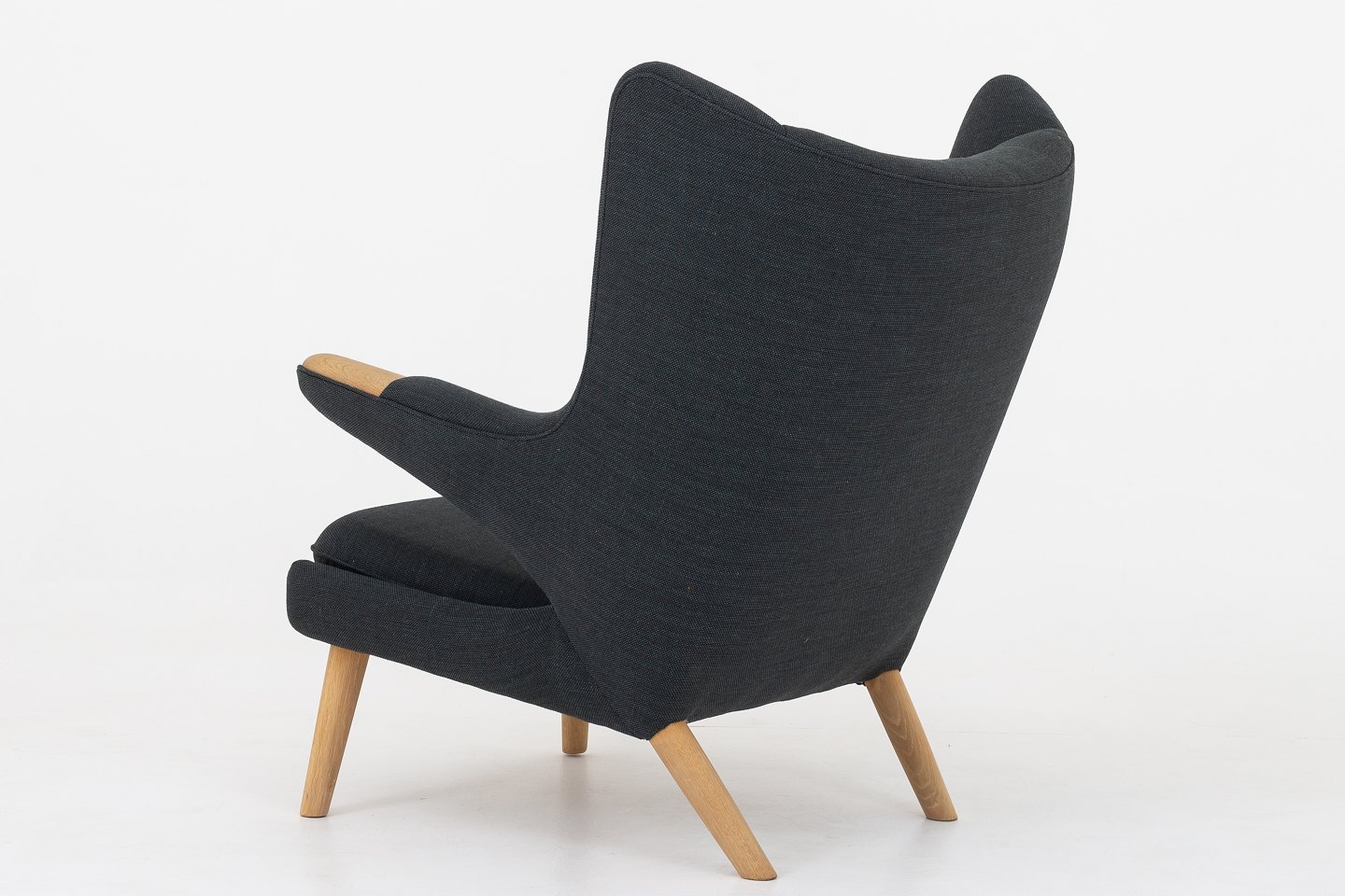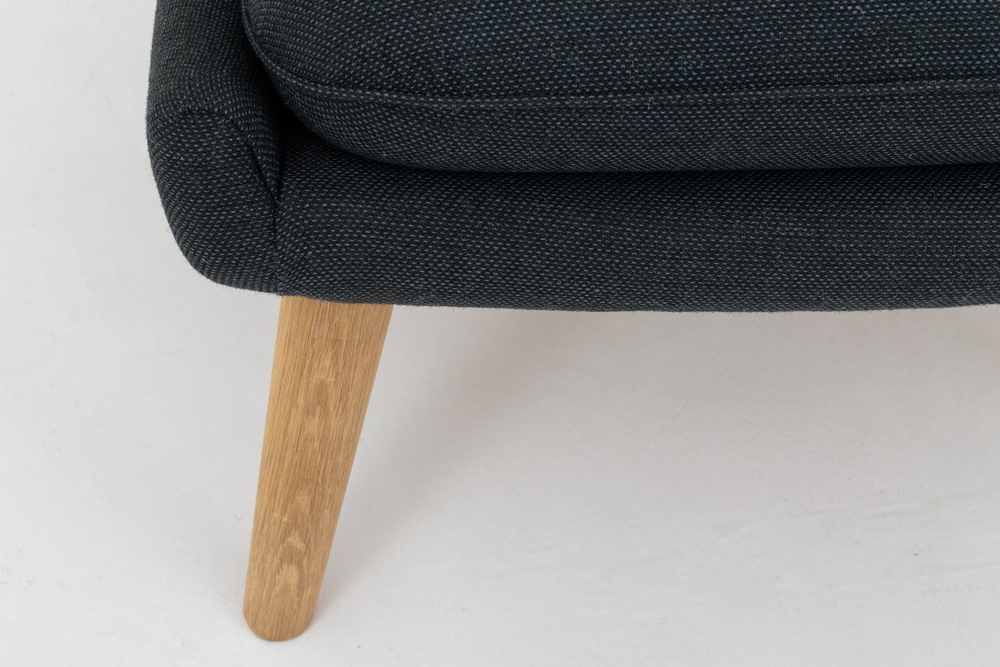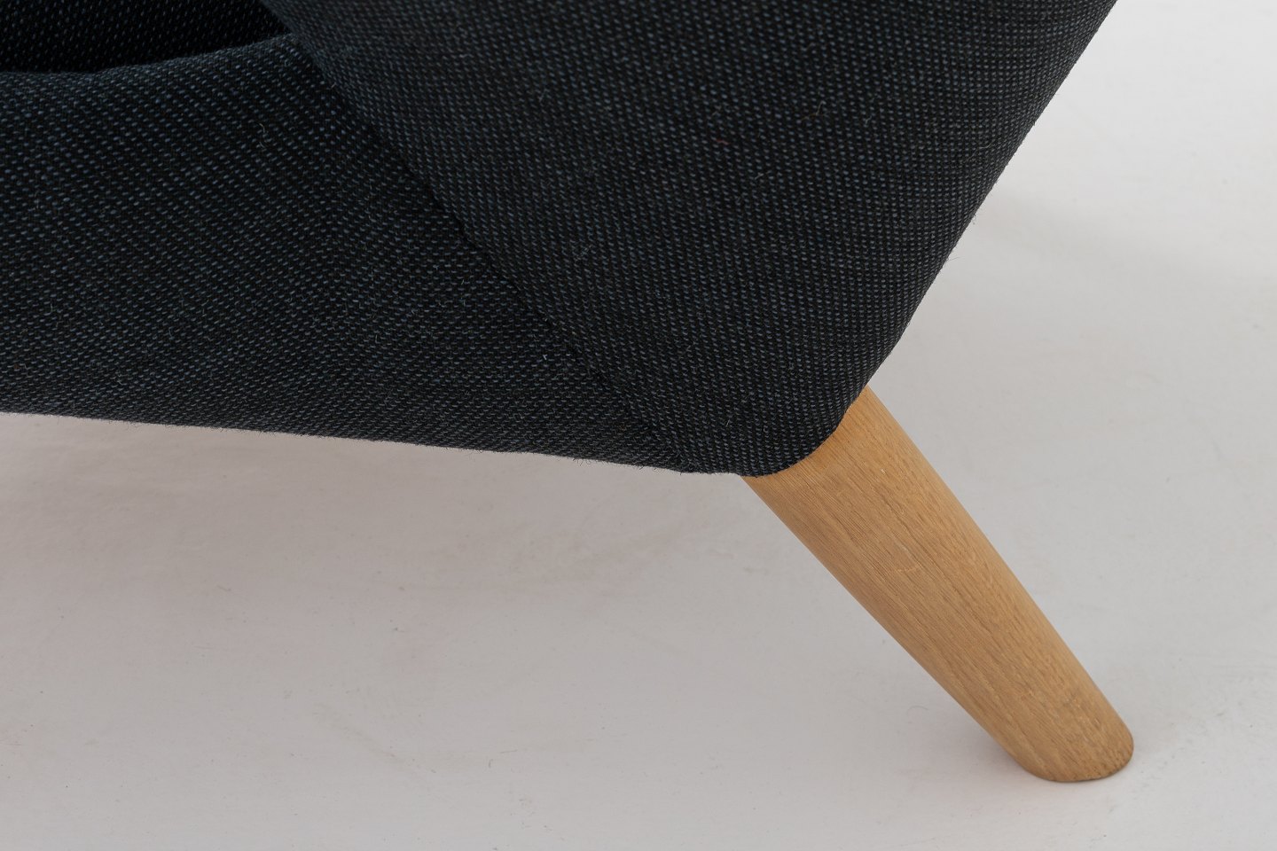 AP 19 - Nybetrukket Bamsestol i Clara 2-stof (code: 987) med knapper i Savanne-læder (farve: Coffee). Poter og ben i eg.