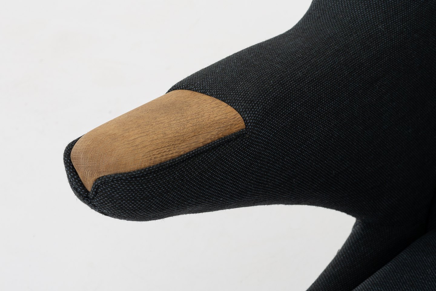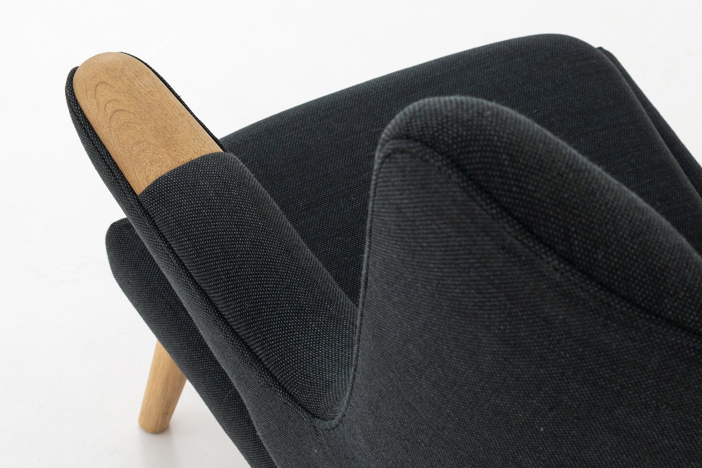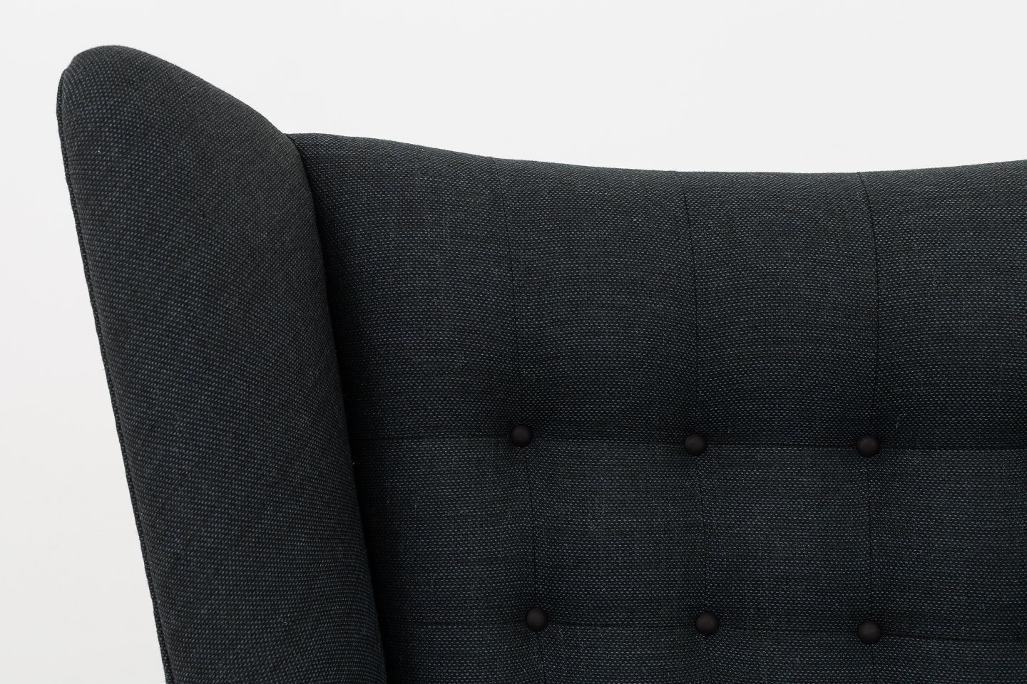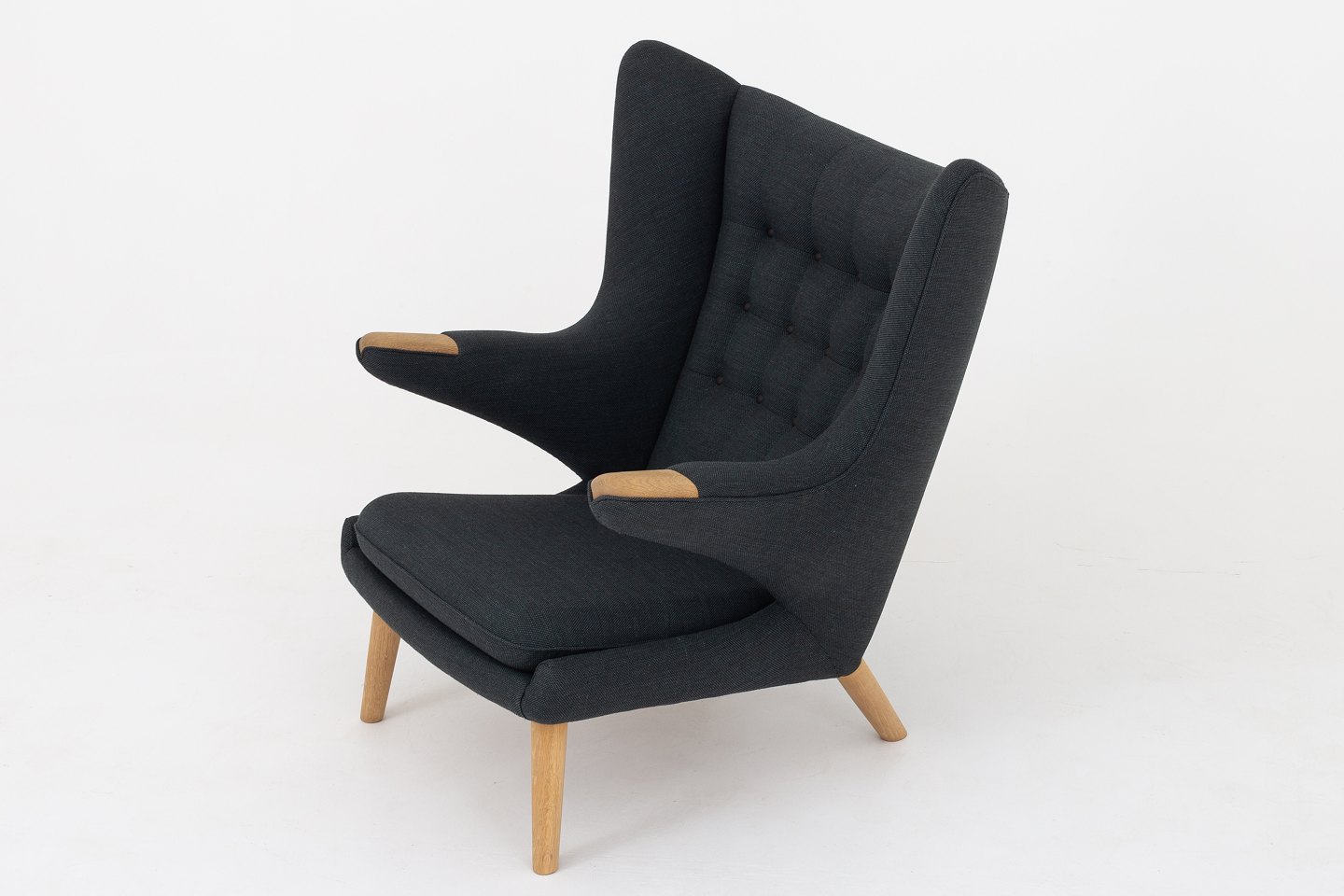 AP 19 - Nybetrukket Bamsestol i Clara 2-stof (code: 987) med knapper i Savanne-læder (farve: Coffee). Poter og ben i eg.