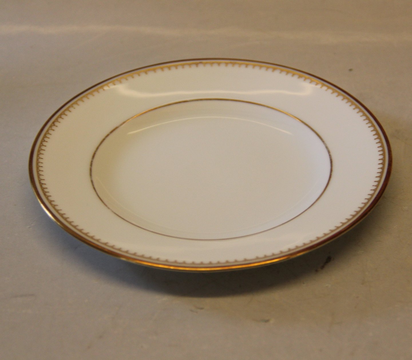 028 a Kagetallerken 15,5 cm (306) B&G Menuet: Hvidt porcelæn, takket guldkant, hvid, form 601