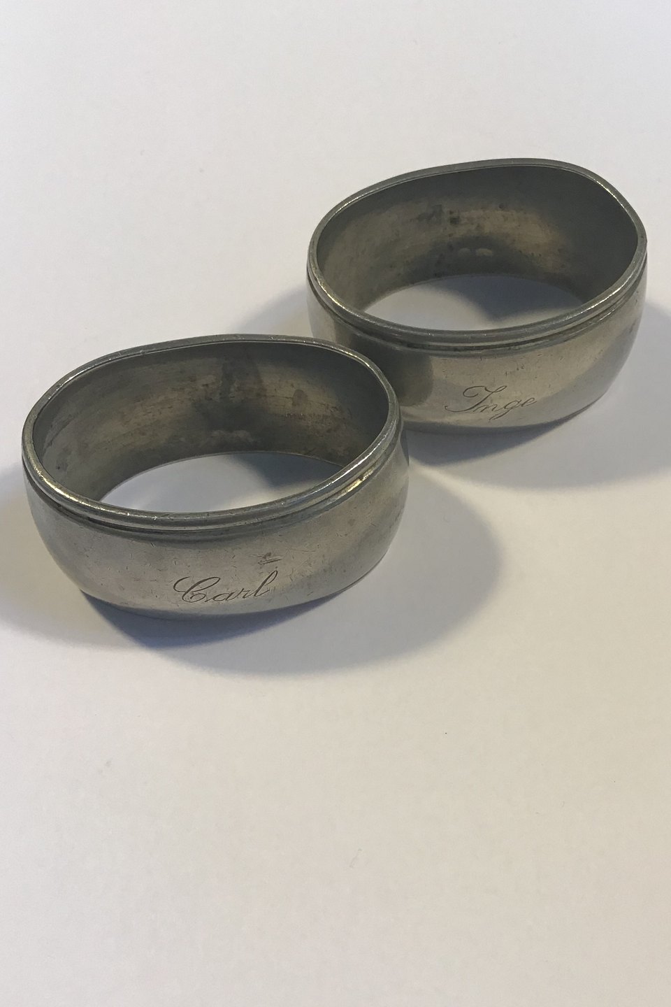 Kay Bojesen Tin Servietringe No. 125. Måler 6 cm x 4.5 cm (Indgraveret hhv. Inge og Carl)