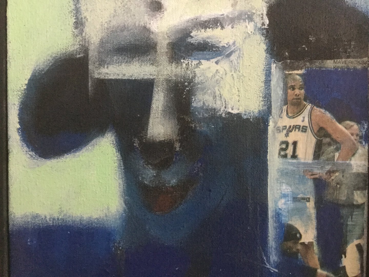 Komposition med ansigt og basketballspilleren Tim Duncan fra San Antonio Spurs 2003.