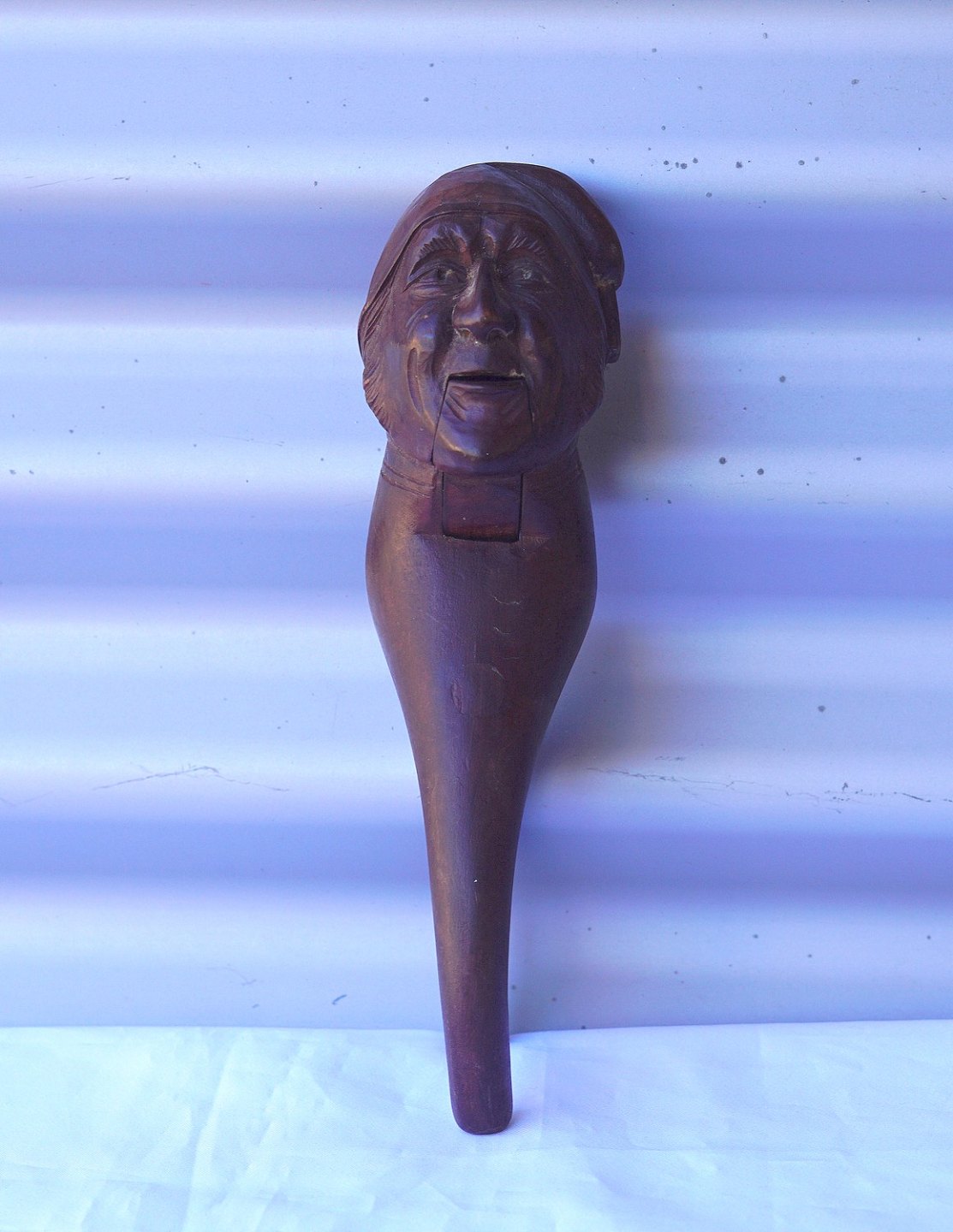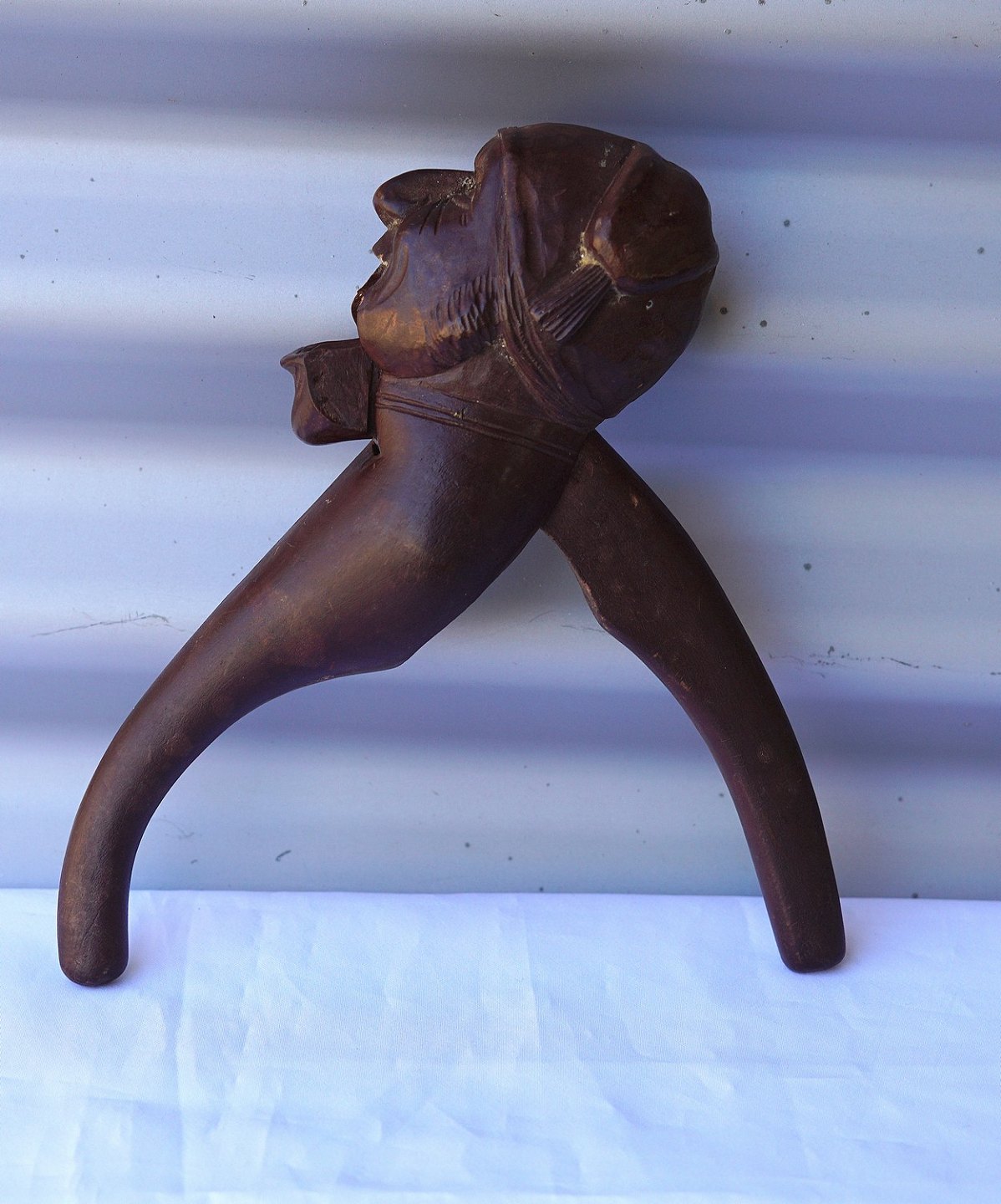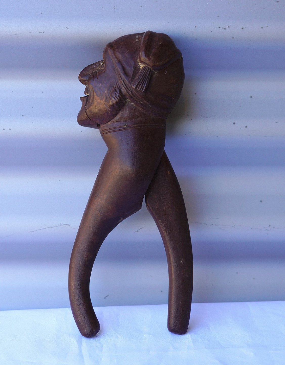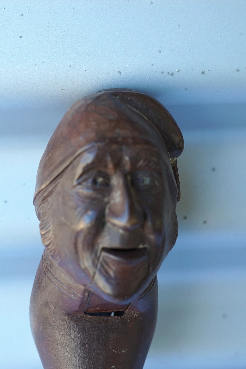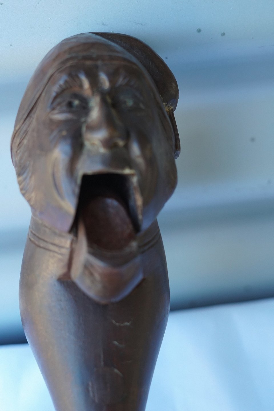 Nissehoved lavet som nøddeknækker, nødderknækkeren frem står med patina