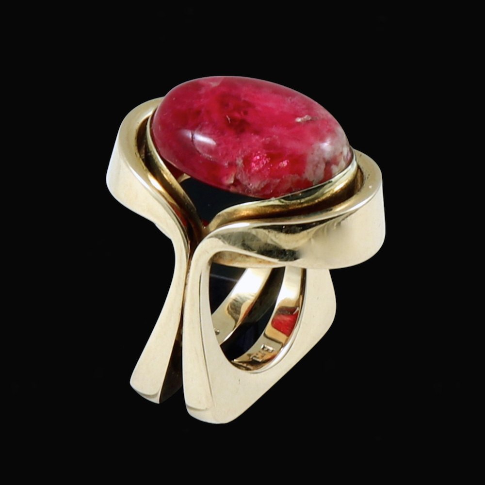 Bræmer-Jensen. Ring i 14k guld med Tugtupit. 1960erne