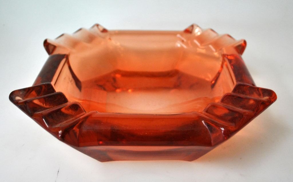 Large art deco salmon stained glass ashtray, 20th century 22 x 22 x 5.5 cm.