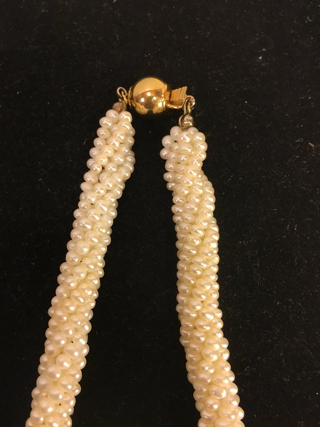 Perle Halskæde 6 radet snoet med forgyldt lås.
