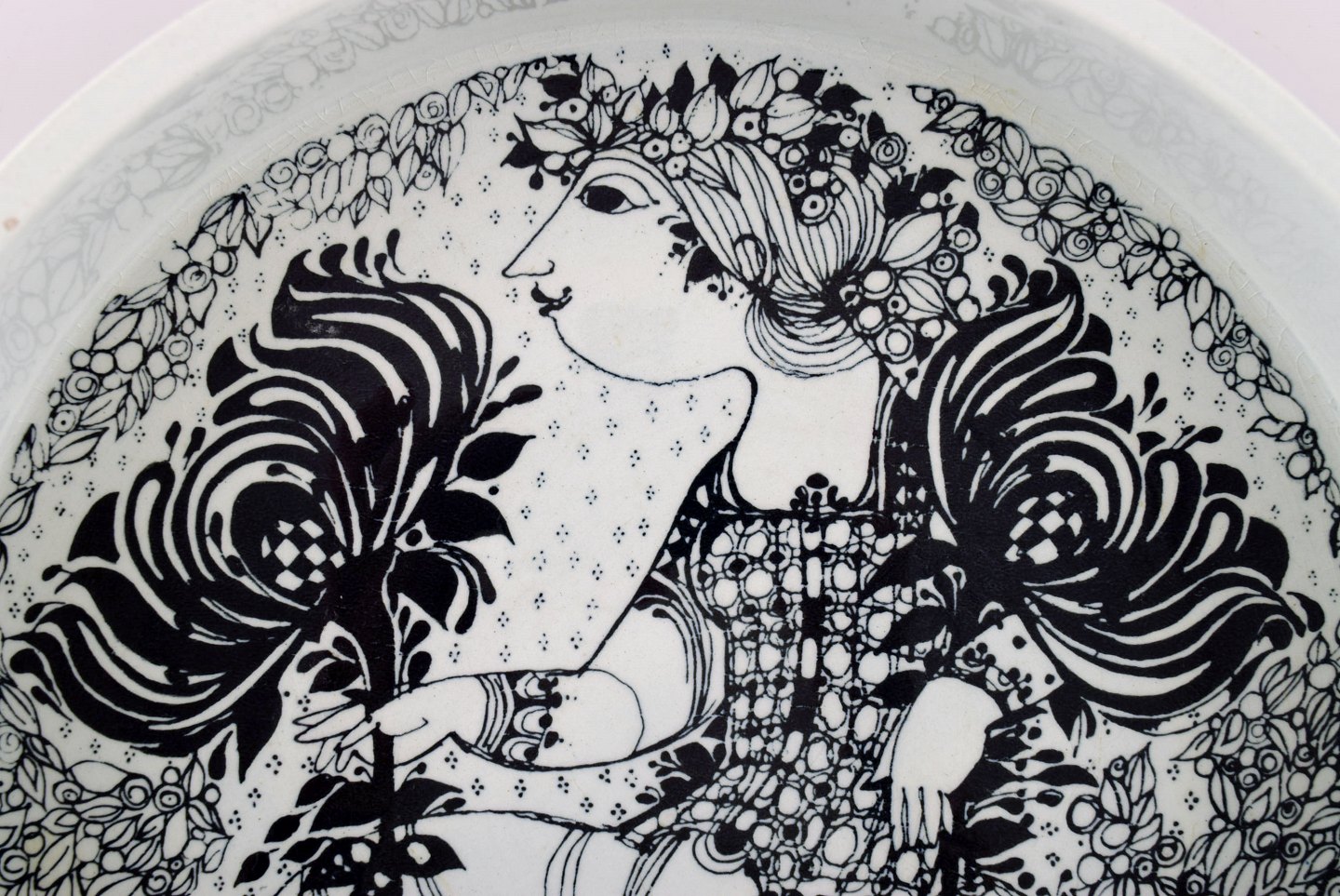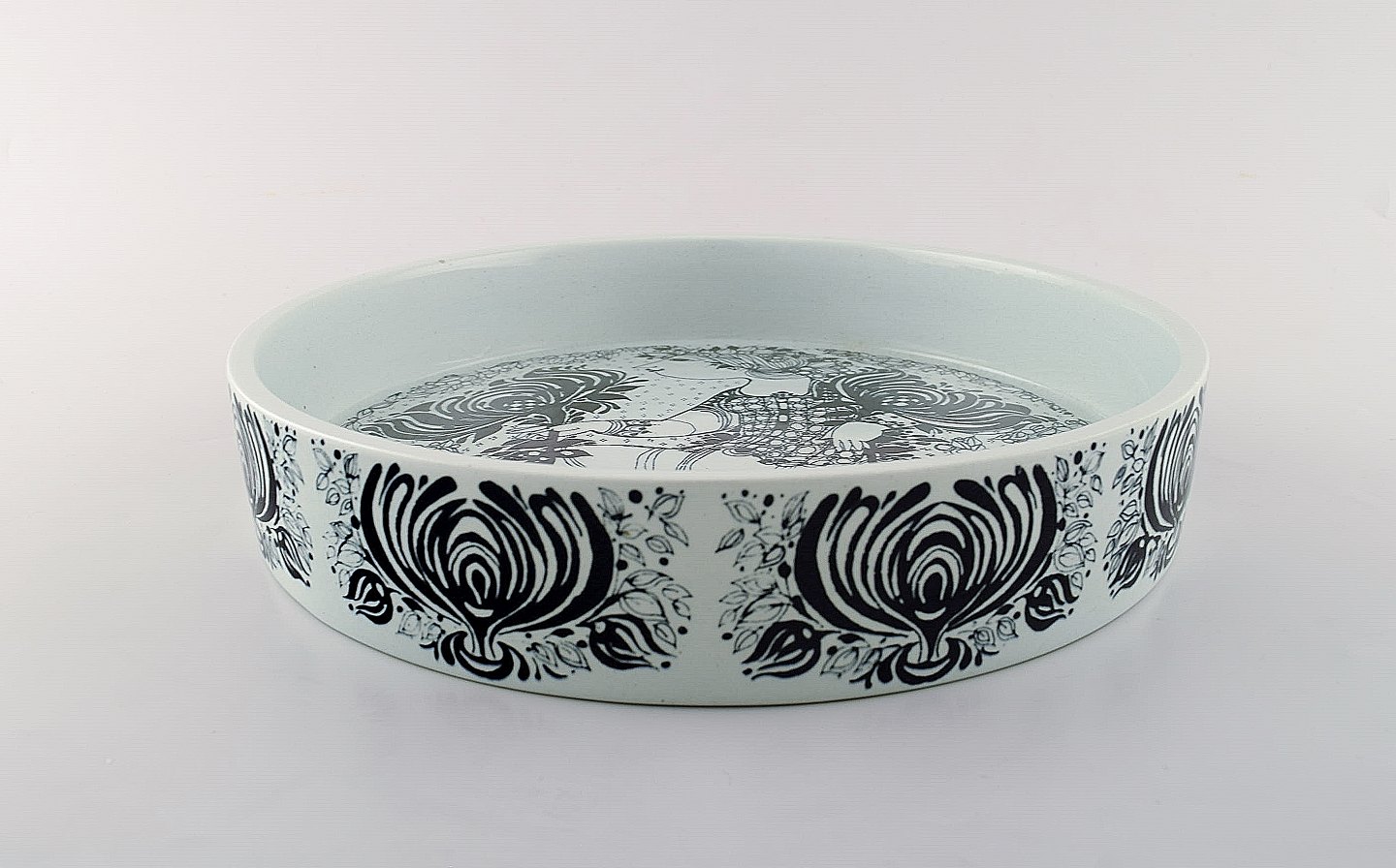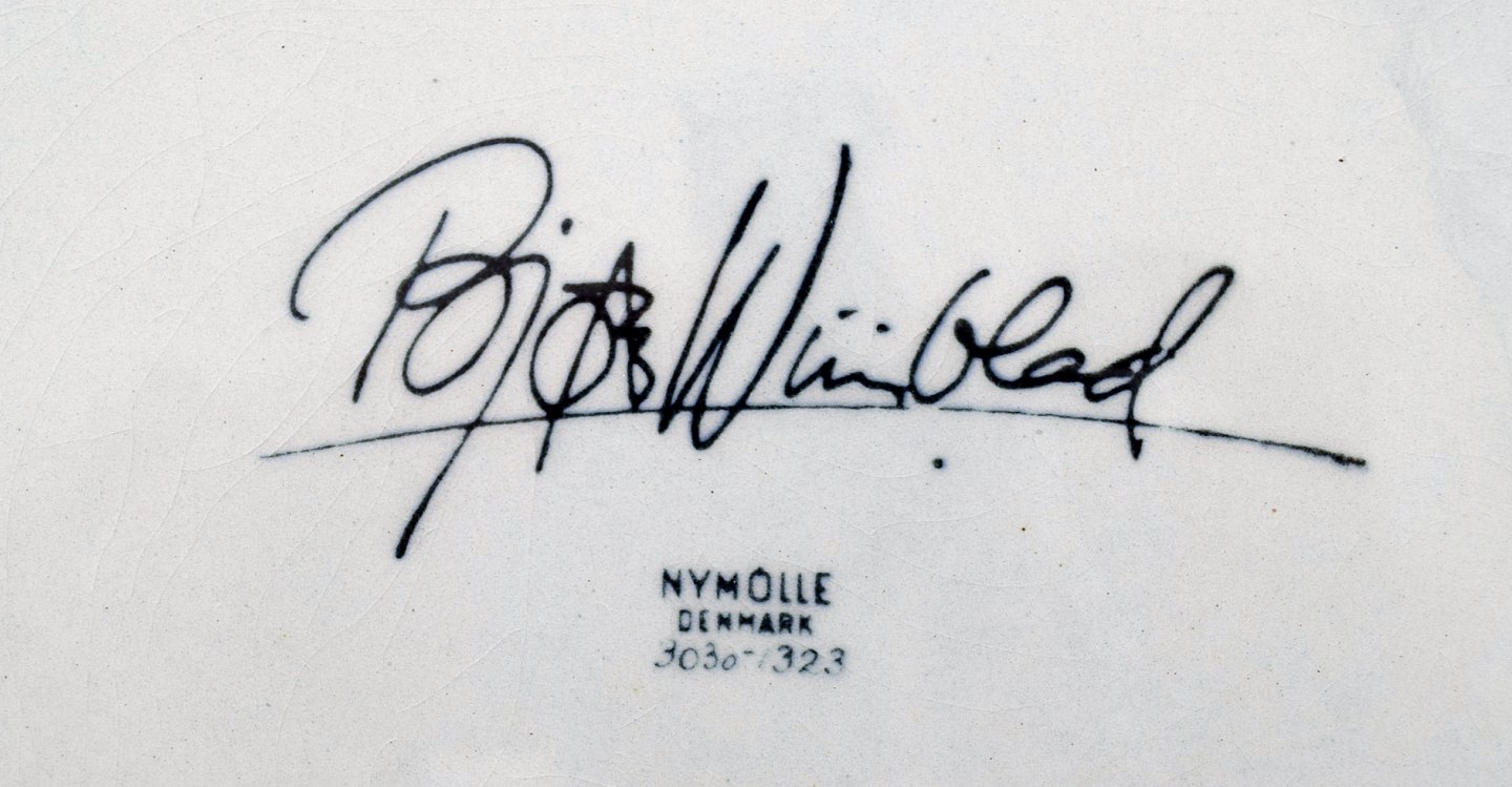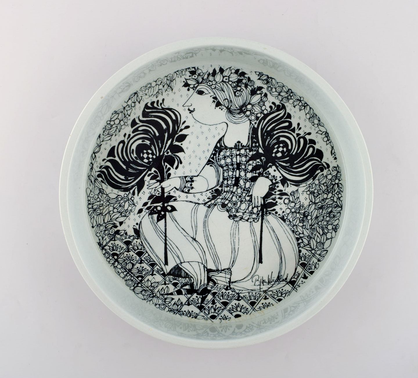 Bjørn Wiinblad for Nymølle. Large bowl in glazed ceramics with motif of woman with birds. 1970's.