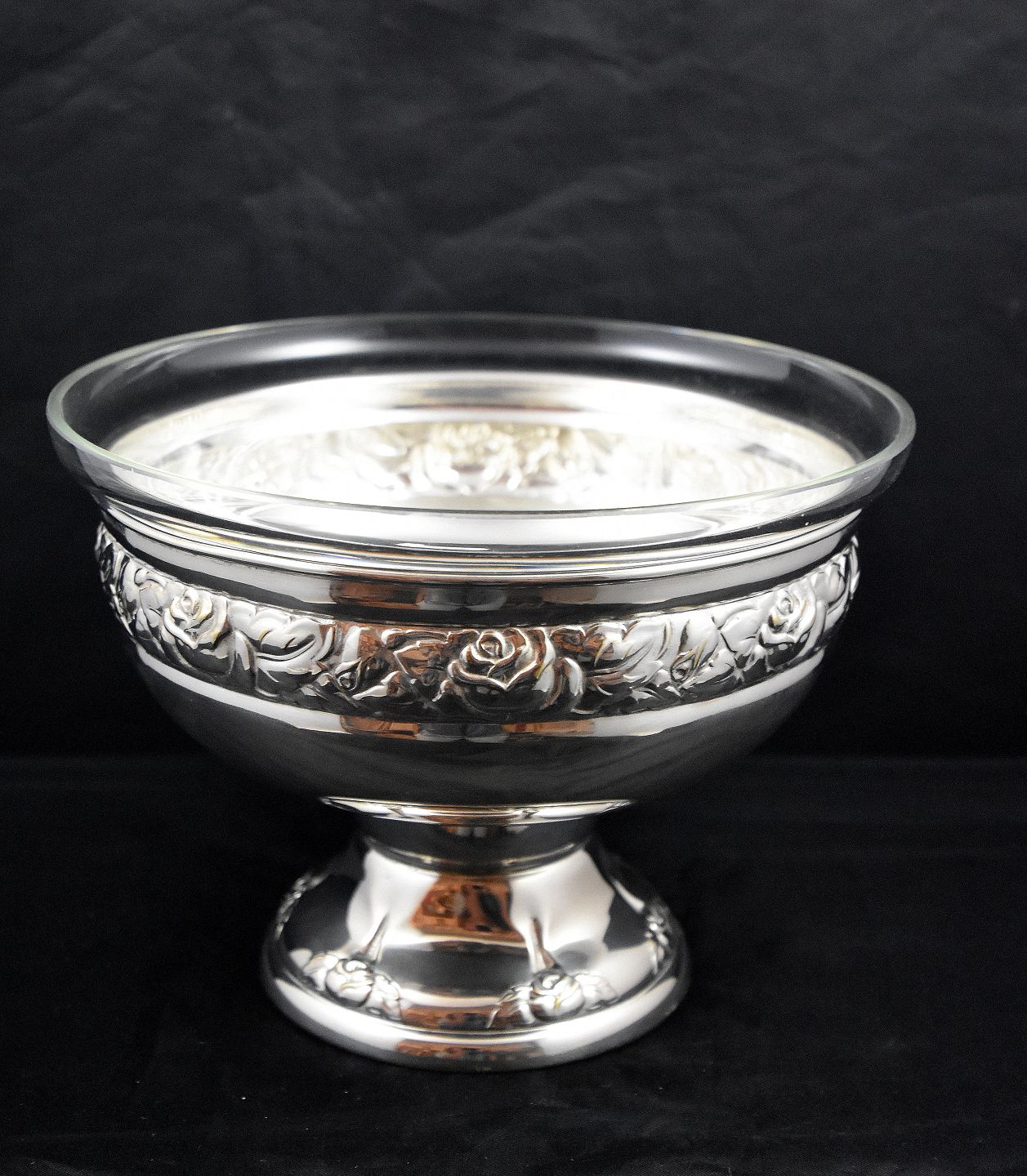 Sølvplet opsats med glasskål