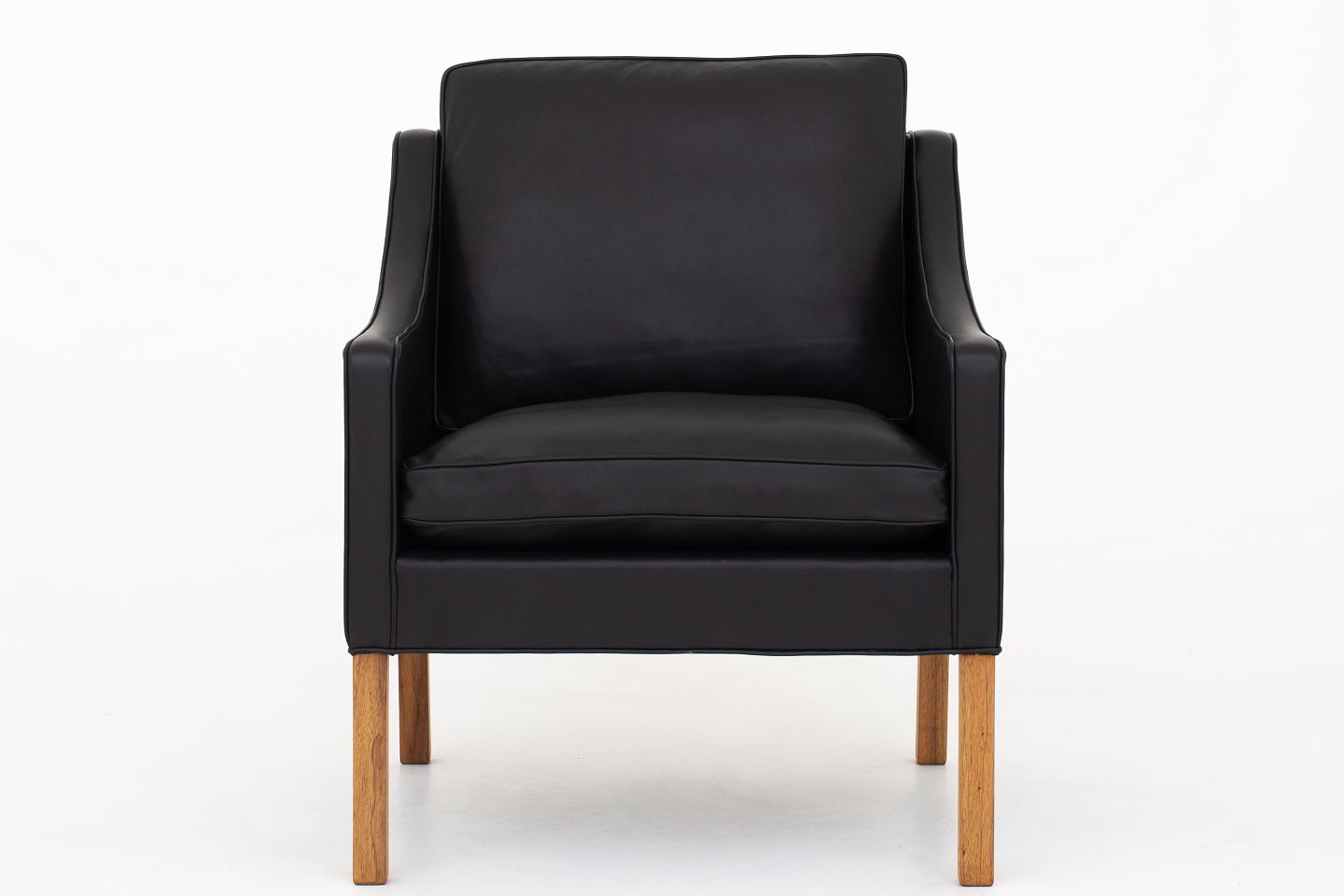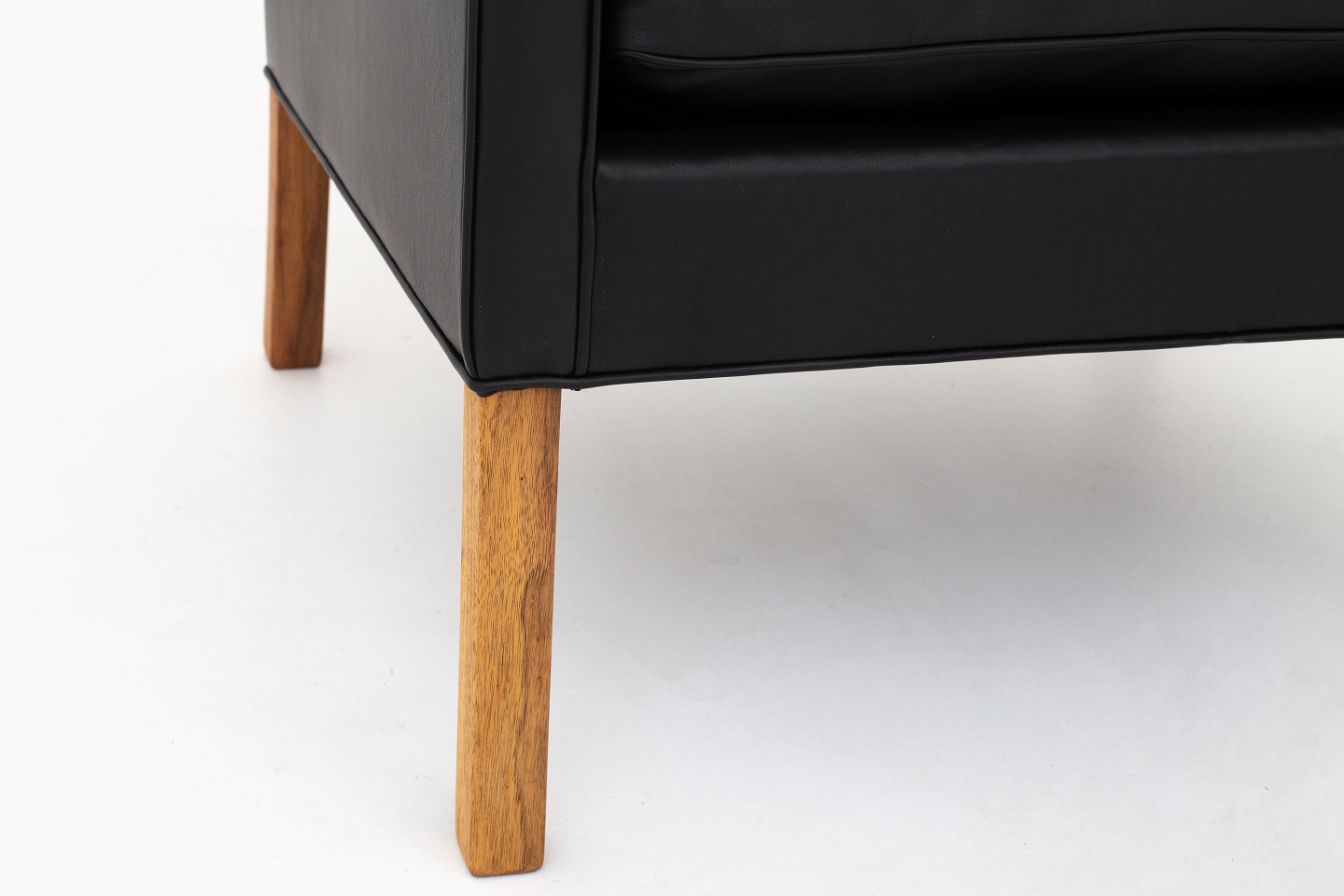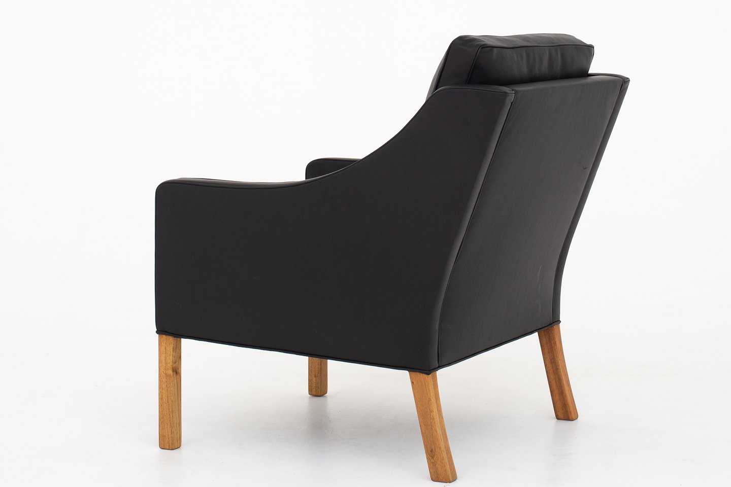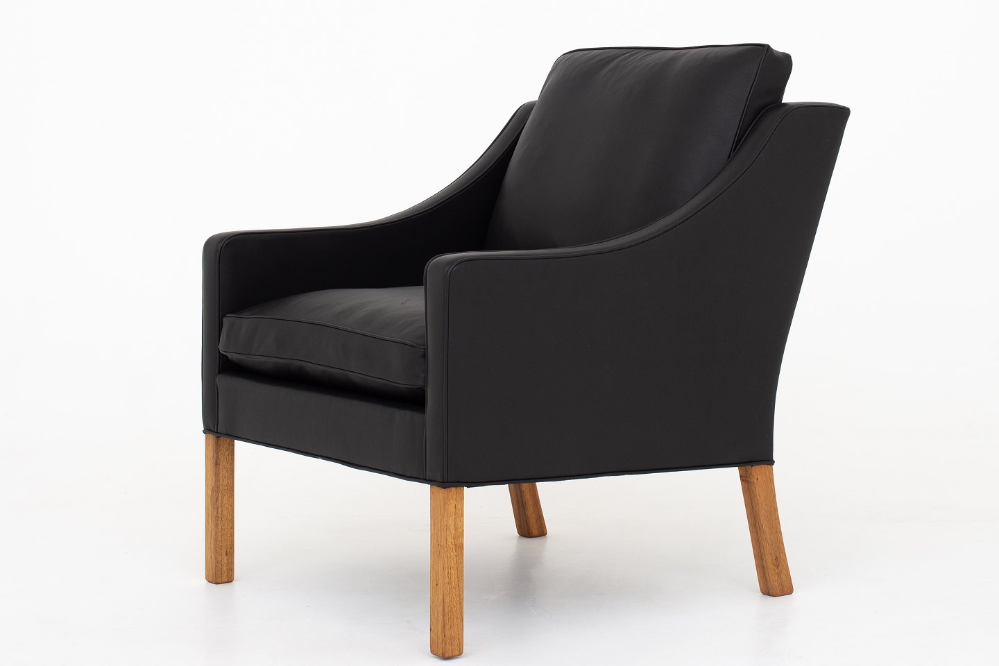 BM 2207 - Nybetrukket lænestol i sort Pleasure-læder og ben i teak. KLASSIK tilbyder polstring af lænestolen med stof eller læder efter eget ønske.