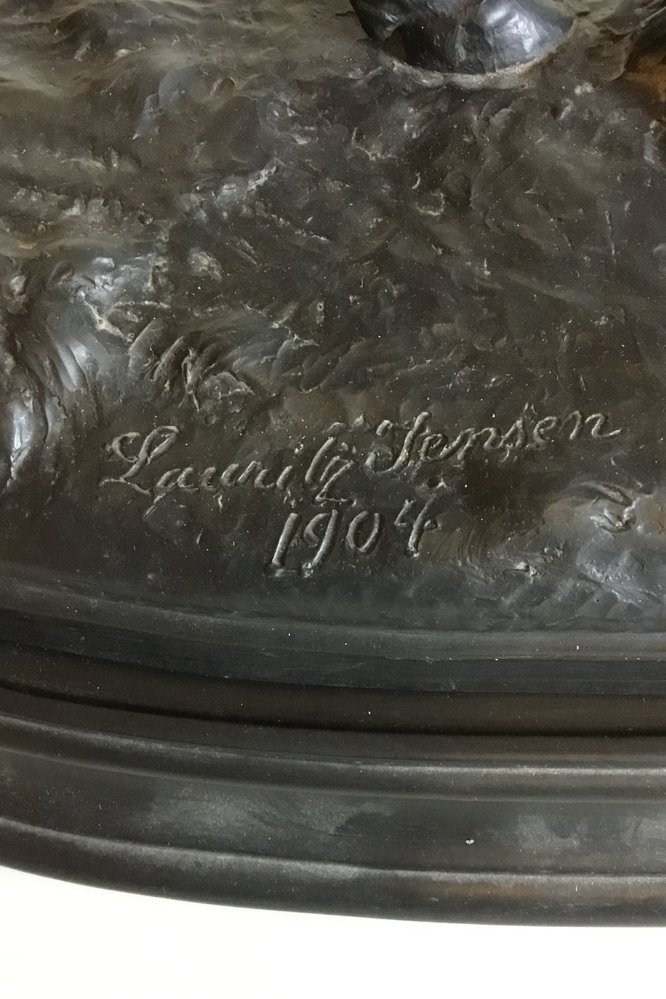 P. Ipsen Sort Terrakotta Figur på stand af Tyr. Signeret Lauritz Jensen 1904 No 815, Stand No 412
