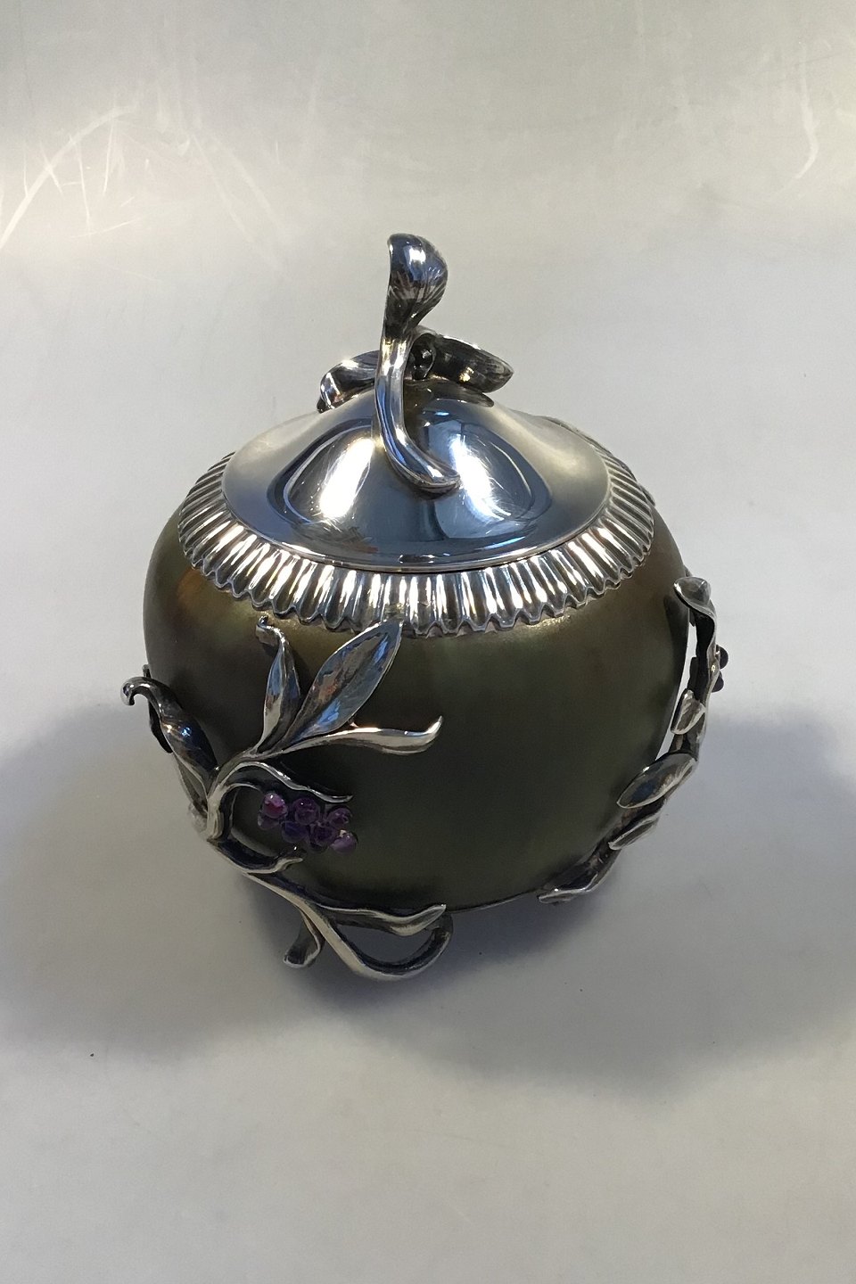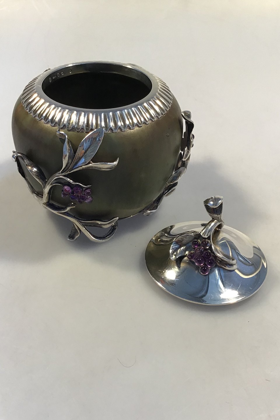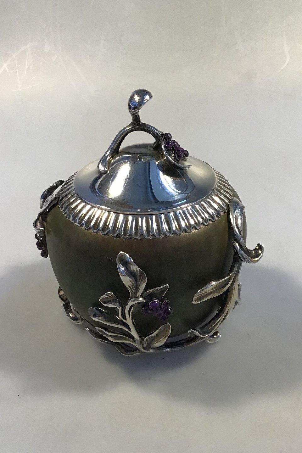 Royal Copenhagen(Patrick Nordstrøm)Stentøjskrukke med Anton Michelsen Sølvmontering og ametyster