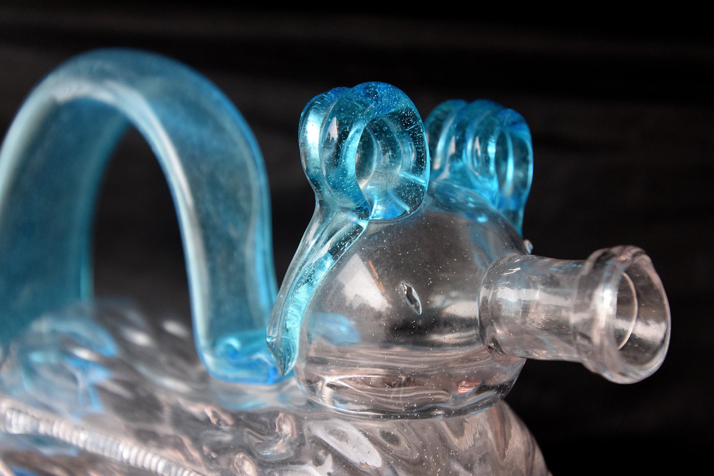 Snapsehund glas, med blå hale som hank og påsatte blå ører