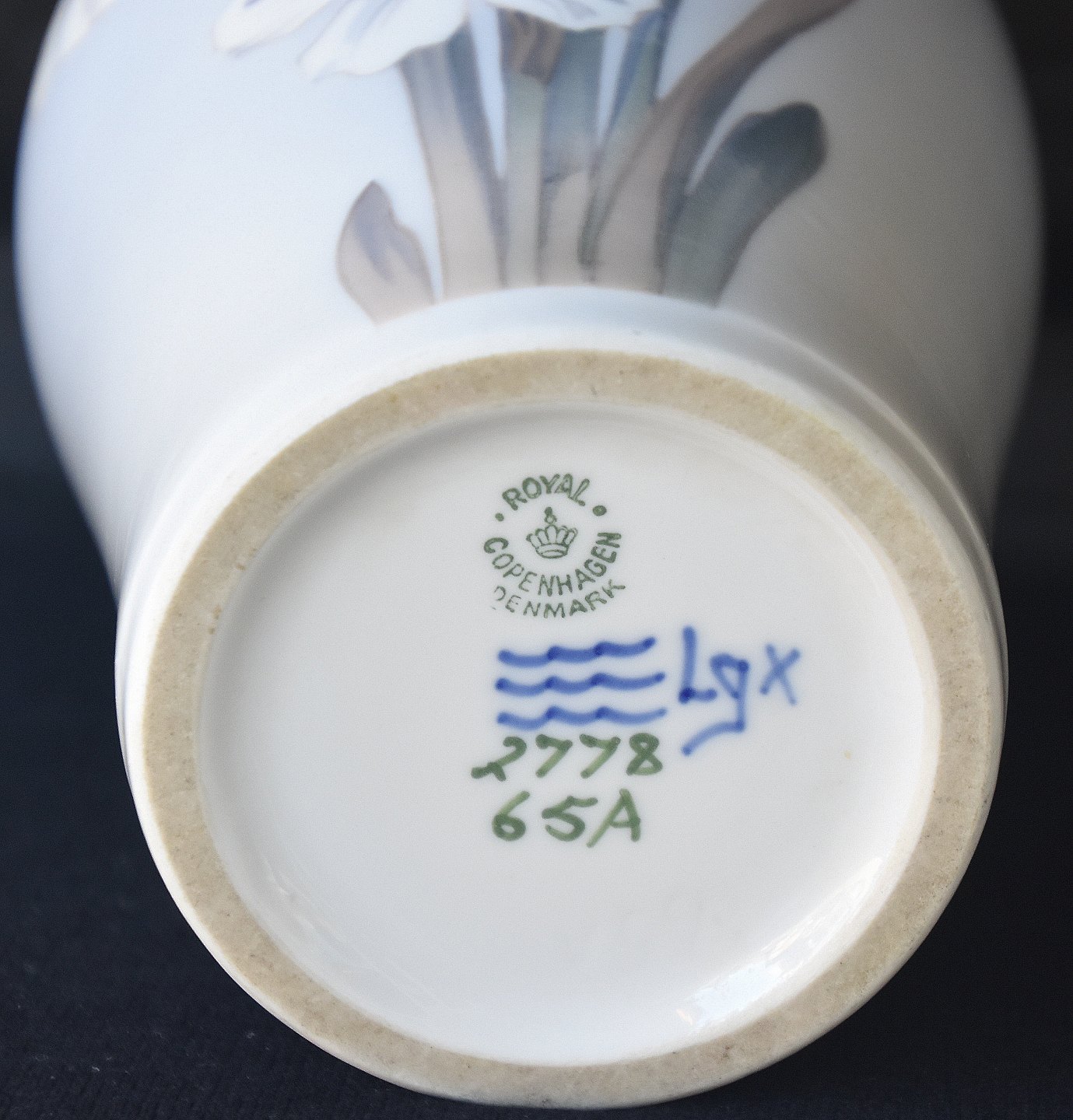 Royal Copenhagen vase, 2778/65A, dekoreret med hvide pinseliljer
