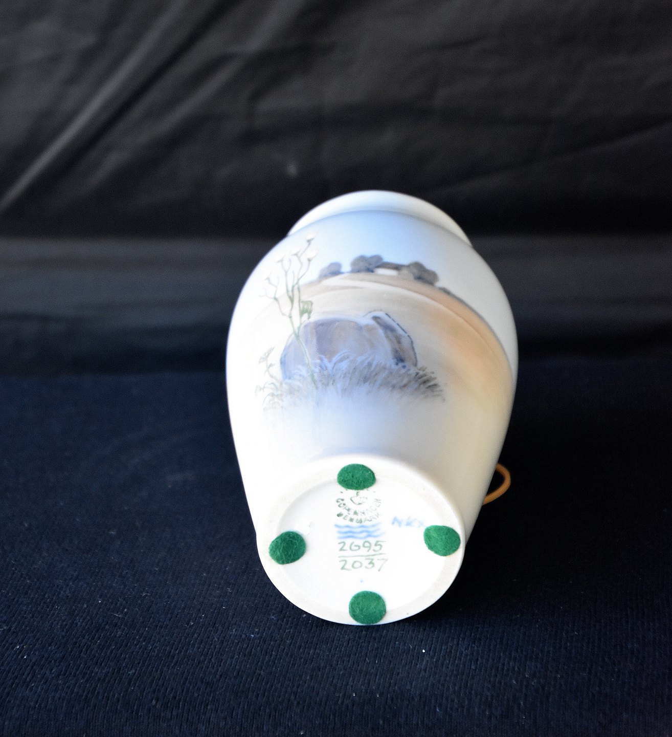 Royal Copenhagen vase nr. 2695/2037, dekoreret med bondegårdsmotiv