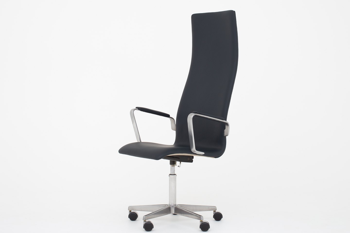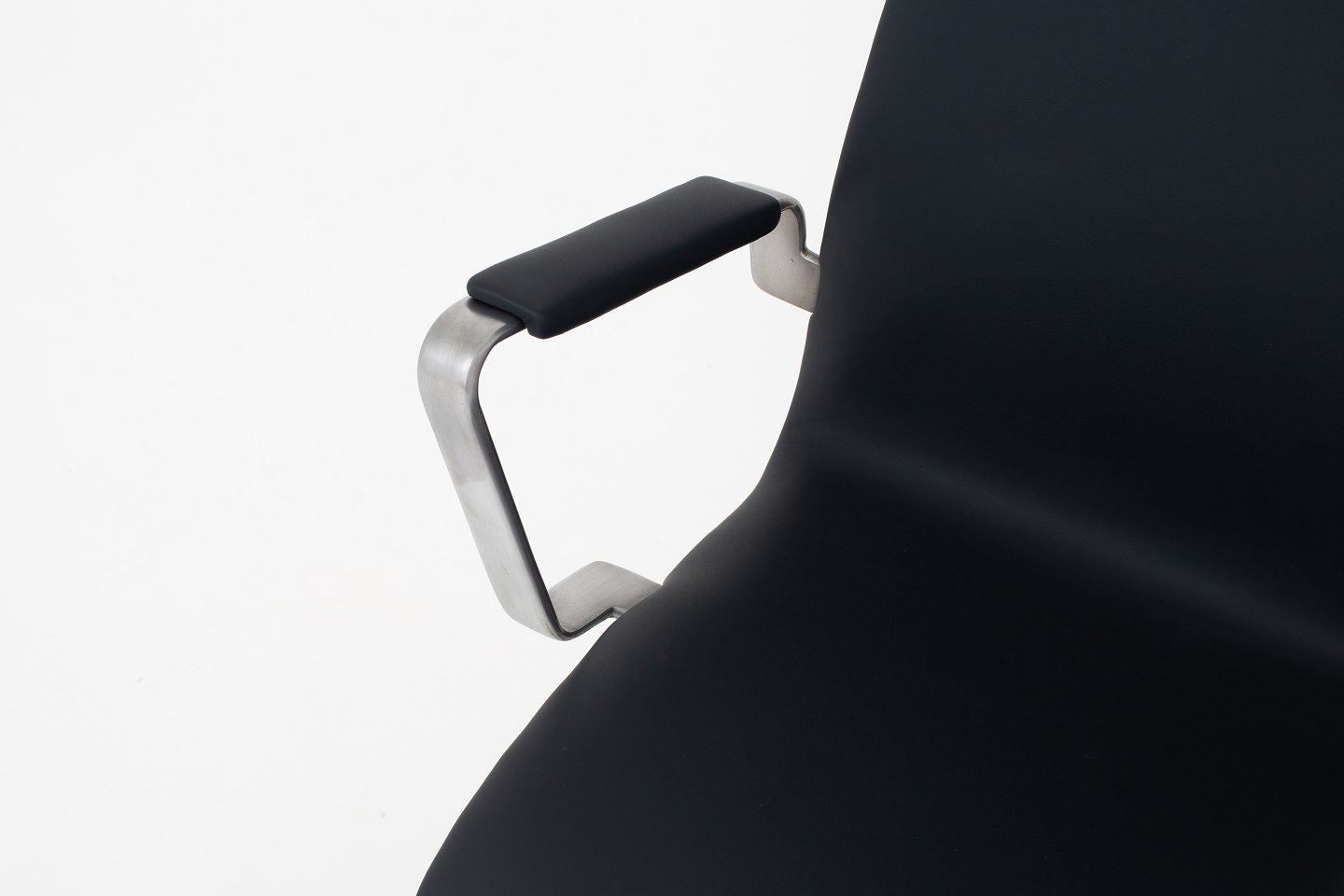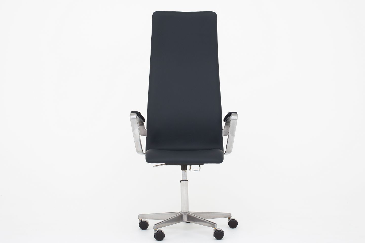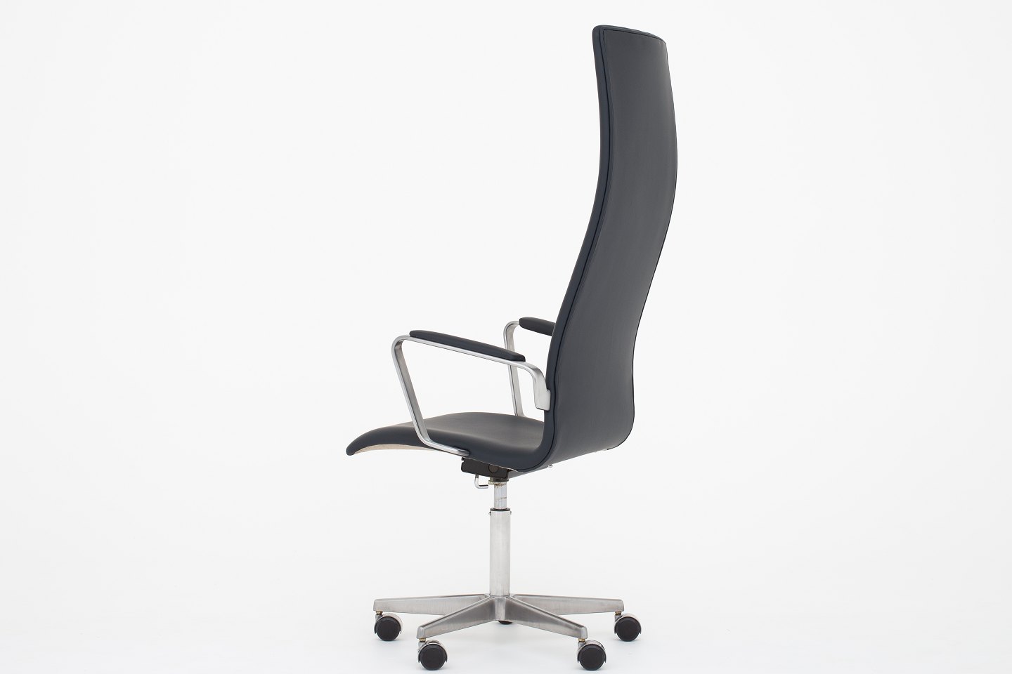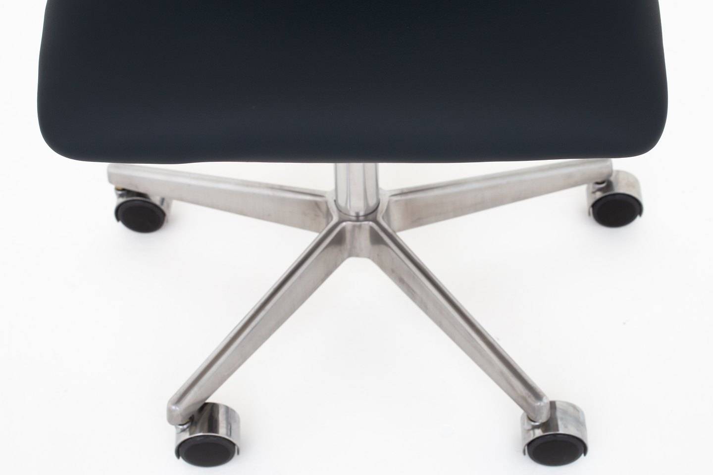 AJ 3292 Oxford - Nybetrukket kontorstol i Savanne Navy-læder med stålfod. KLASSIK tilbyder polstring af stolen med stof eller læder efter eget valg.