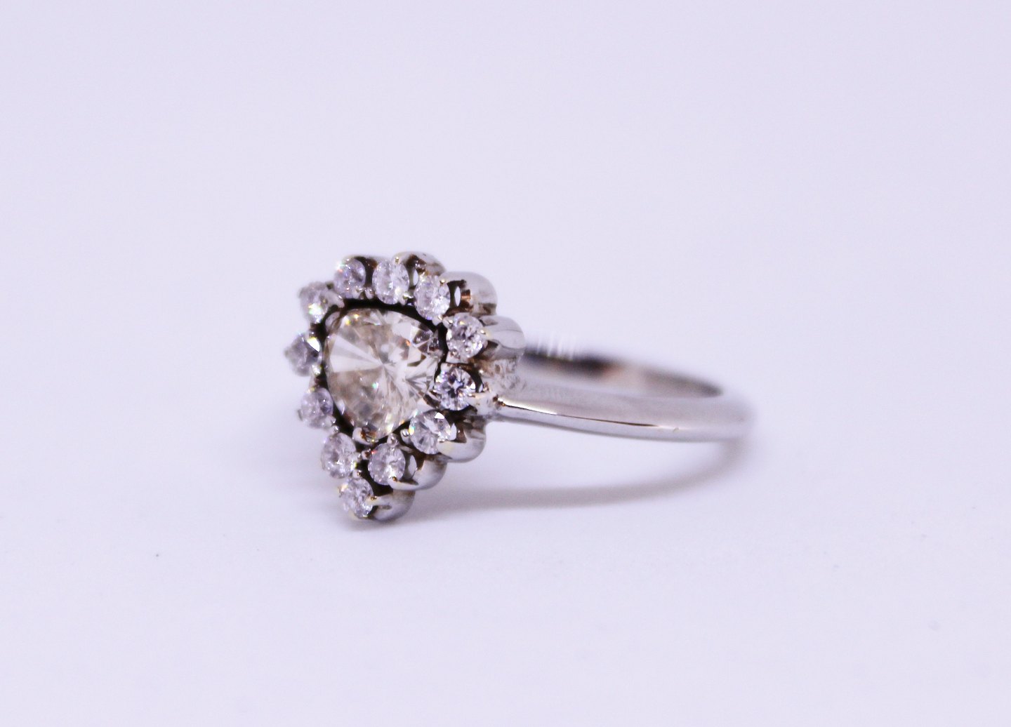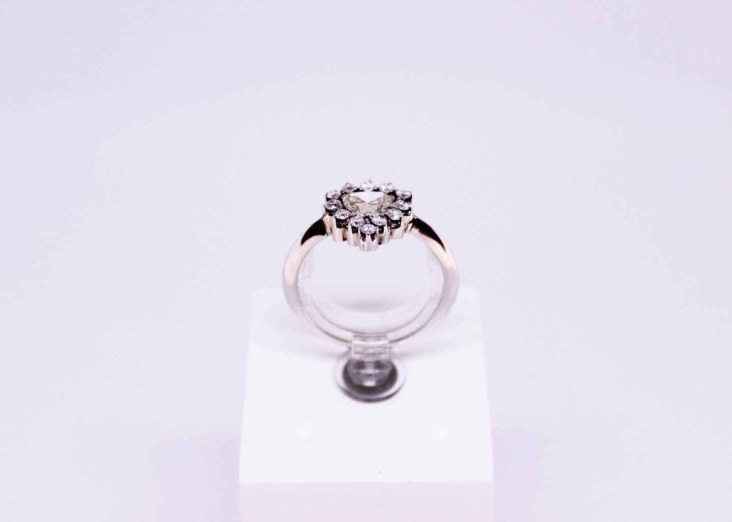 Ring af 14 kt. hvidguld dekoreret med 13 diamanter af 1,08 ct.