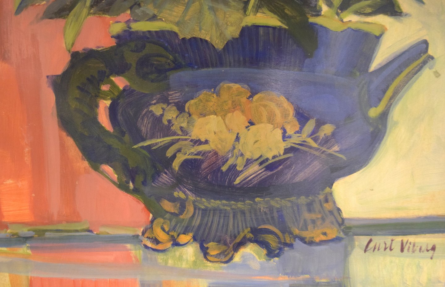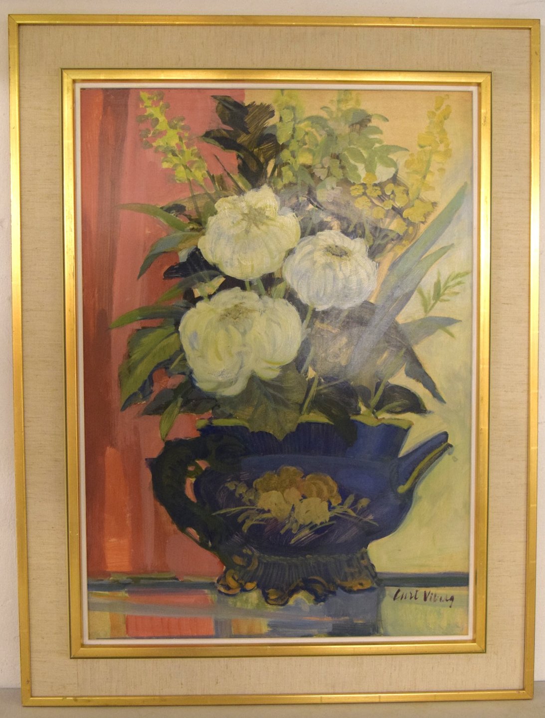 Curt Viberg (1908-1969), svensk maler. Opstilling med blomster. Olie på plade. 1960'erne.