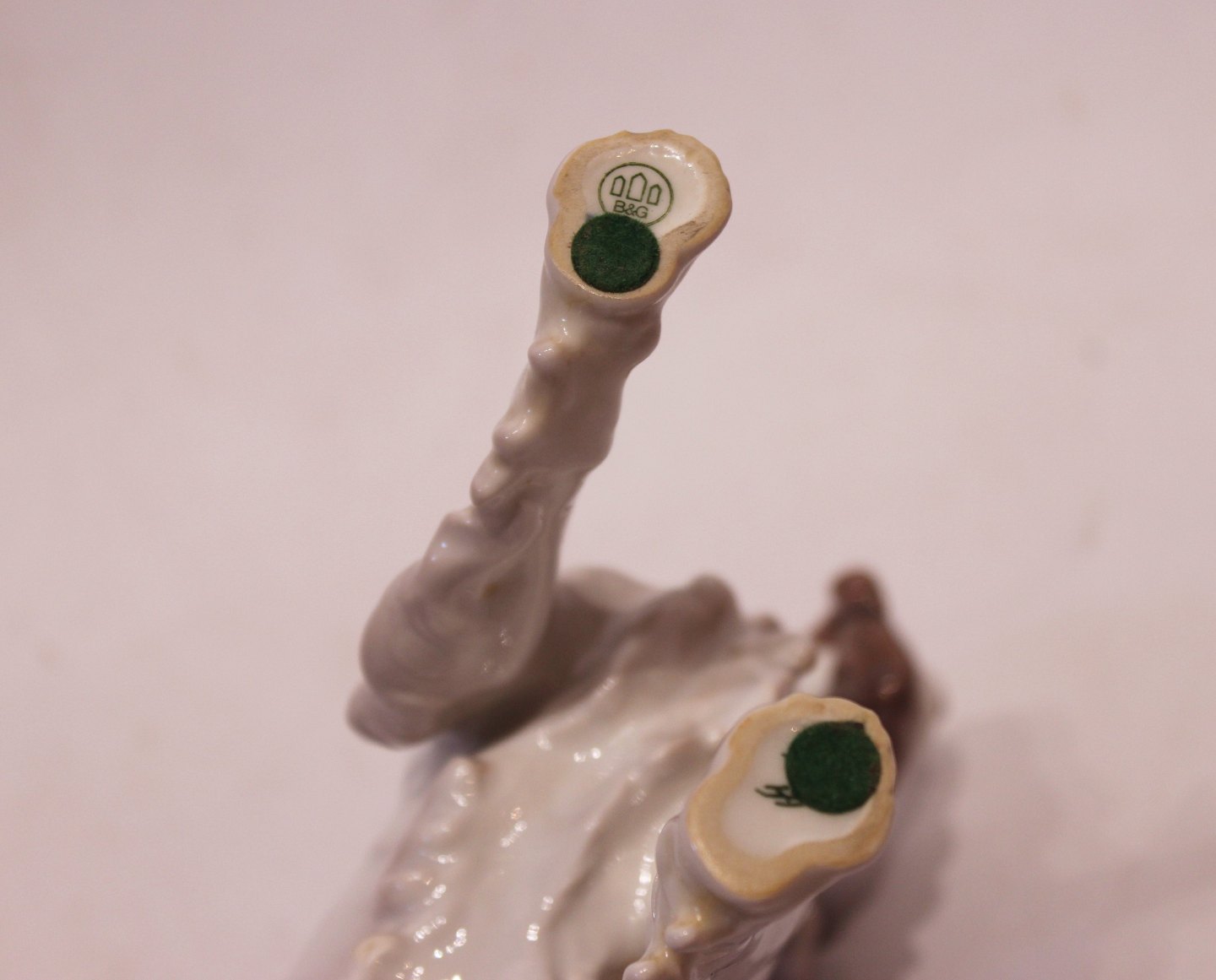 Porcelain figure in the form of a hunting dog with prey of Bing and Grøndahl. designed by Lauritz Jensen. The figure is in great condition.