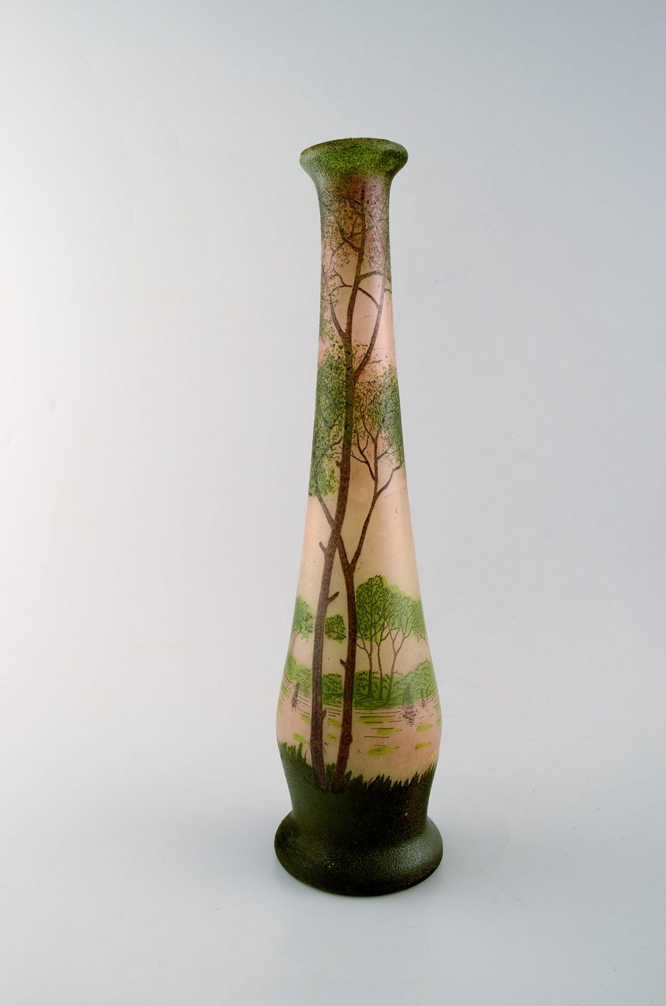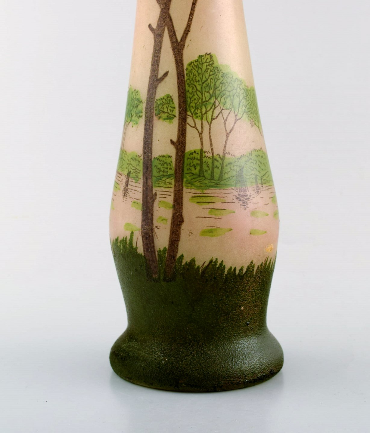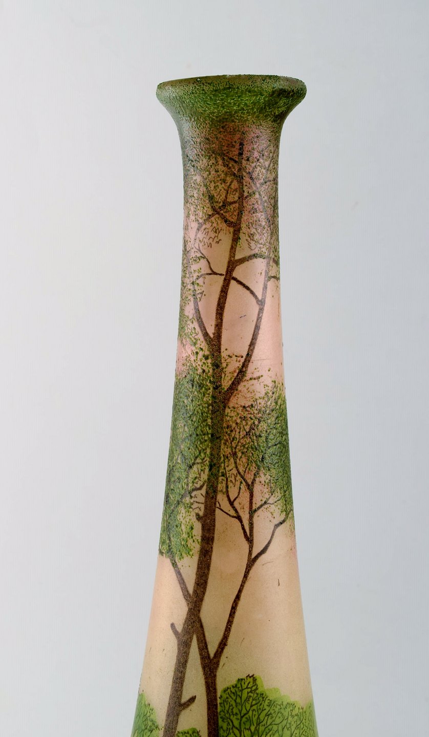 François-Théodore Legras (1839-1916). Art nouveau cameo vase med emaljedekoration. Skovlandskab. Ca. 1900.