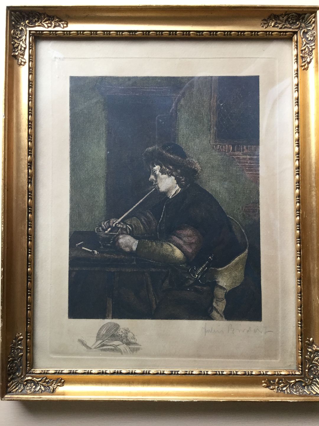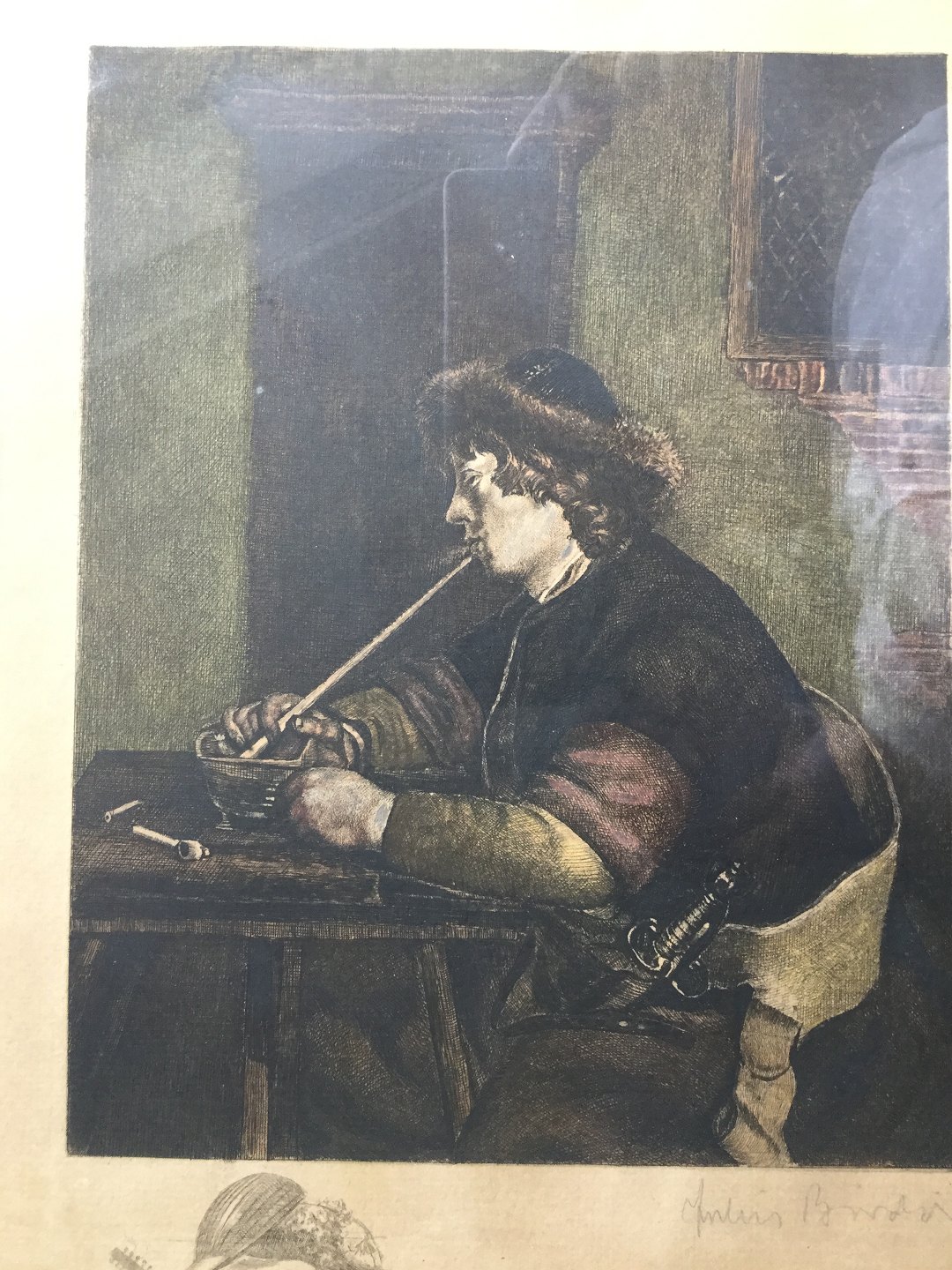 Efter maleri af Gerard ter Borch (1617-81) "The Smoker" fra ca. 1665.