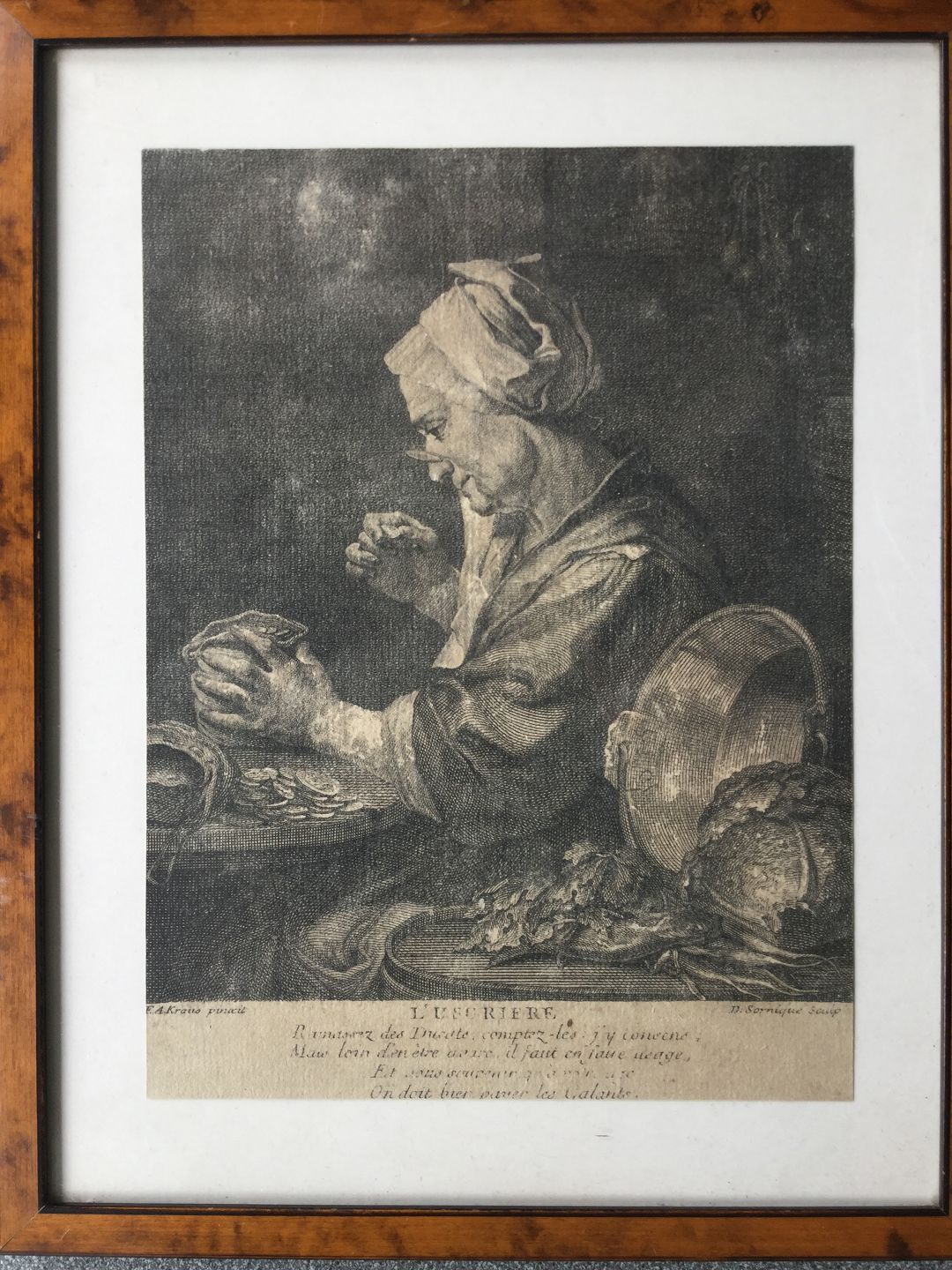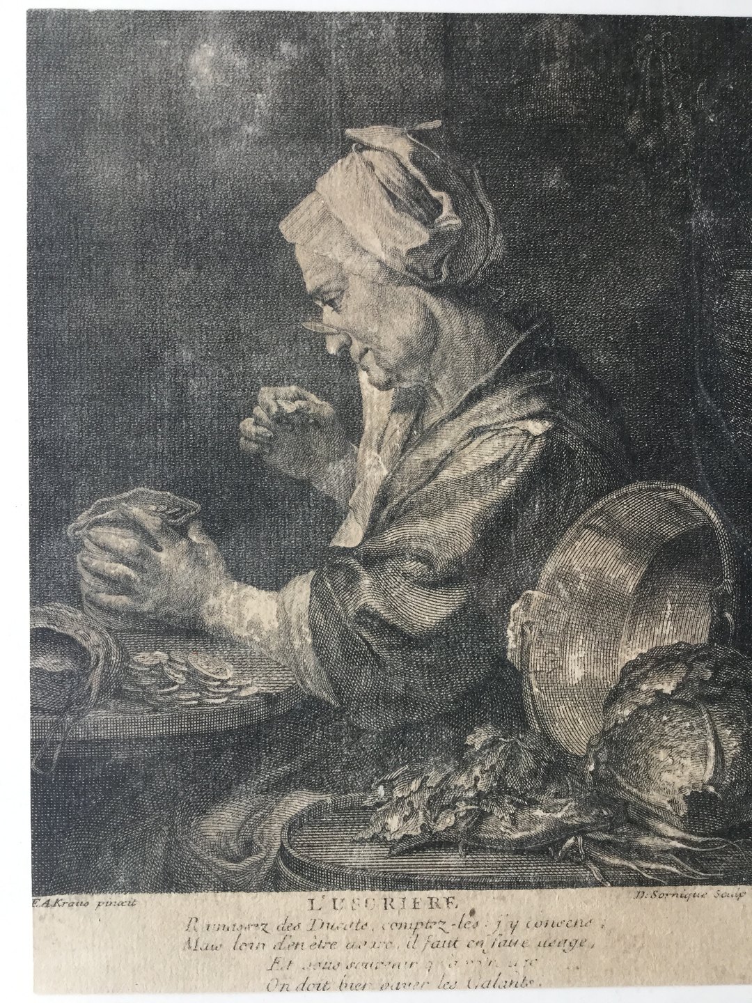 Kobberstik af Dominique Sornique - Kvinde der studere mønter.