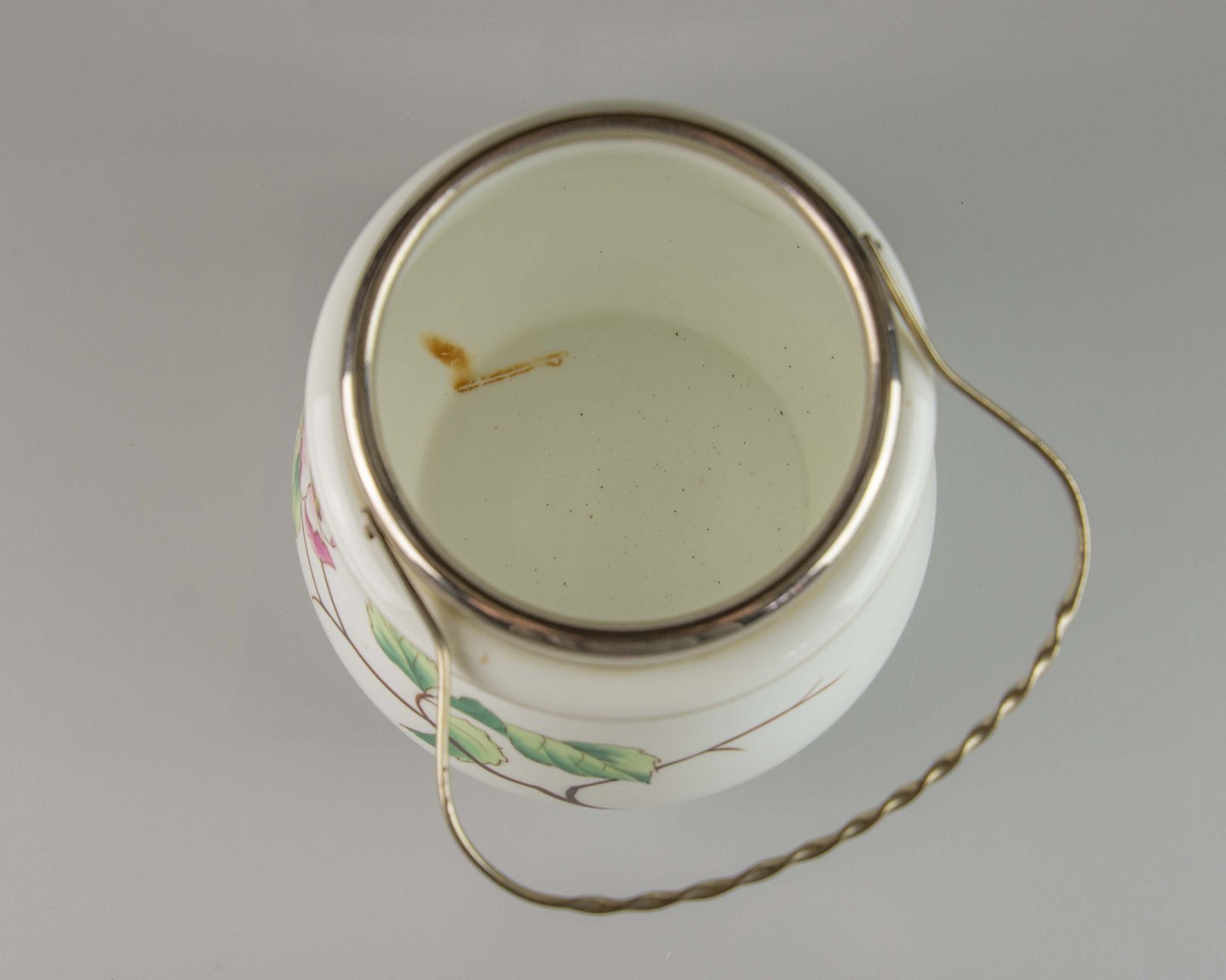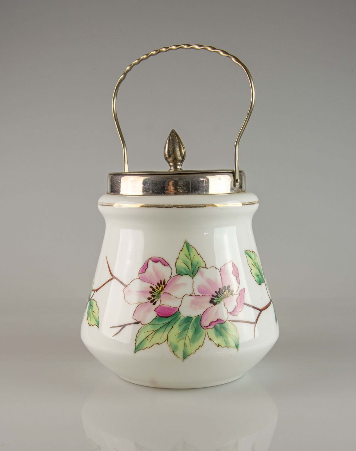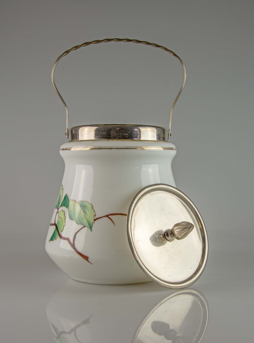 Kiksespand i opalhvid glas med motiv af lyserøde blomster nr. 2284/235