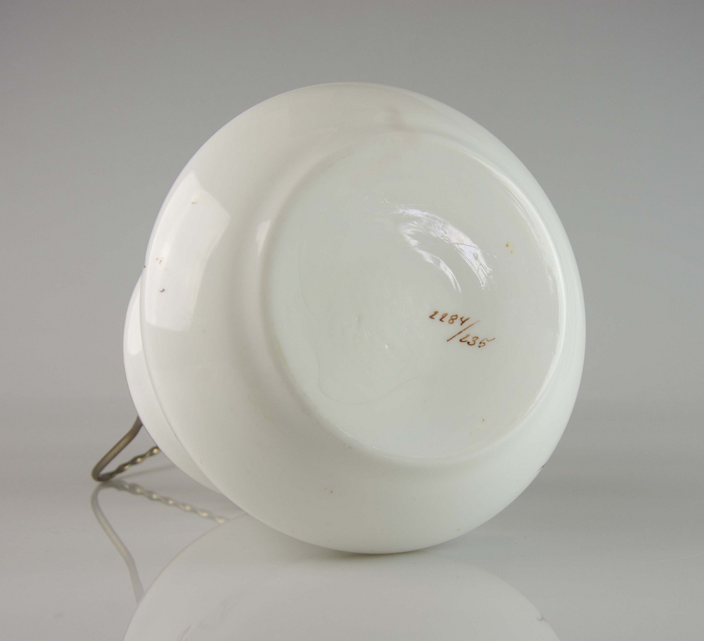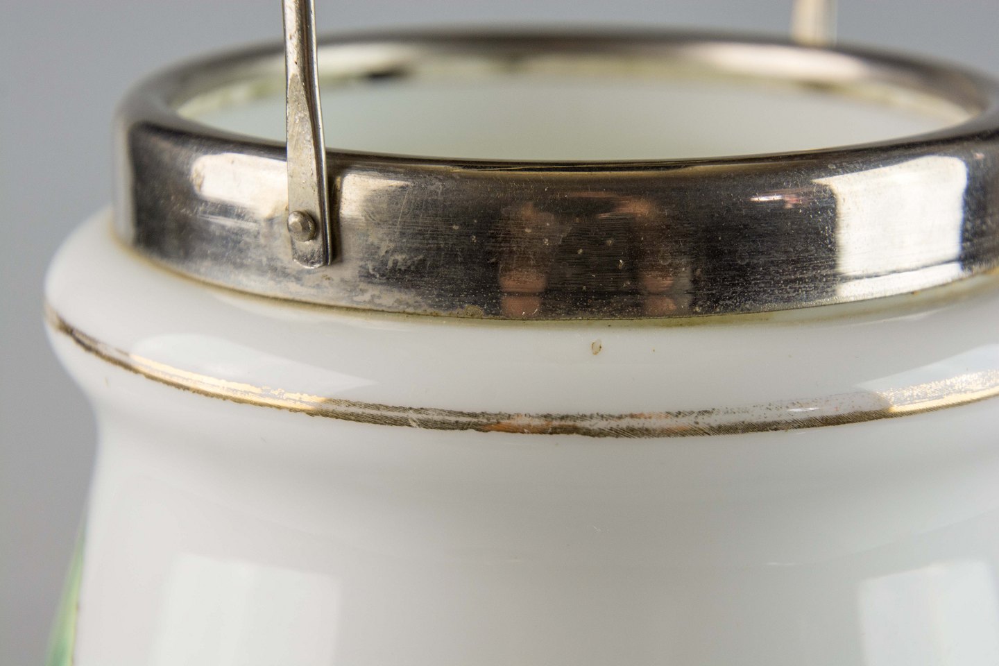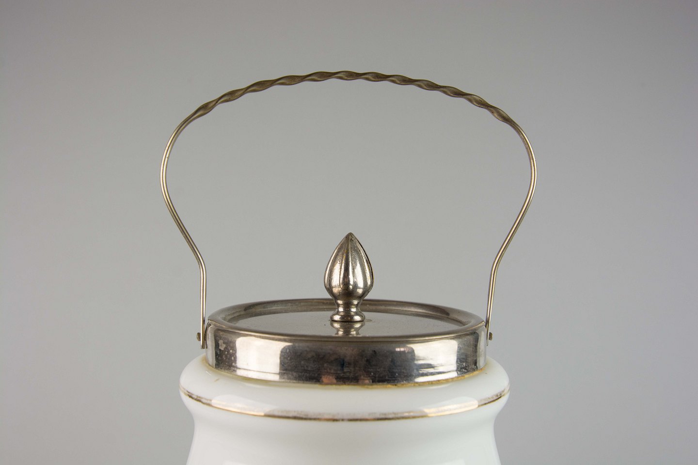 Kiksespand i opalhvid glas med motiv af lyserøde blomster nr. 2284/235