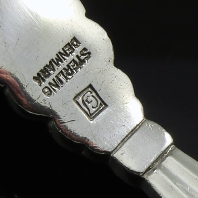Stemplet med 1933-44 Georg Jensen stempler. Sterling, Denmark.