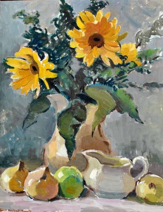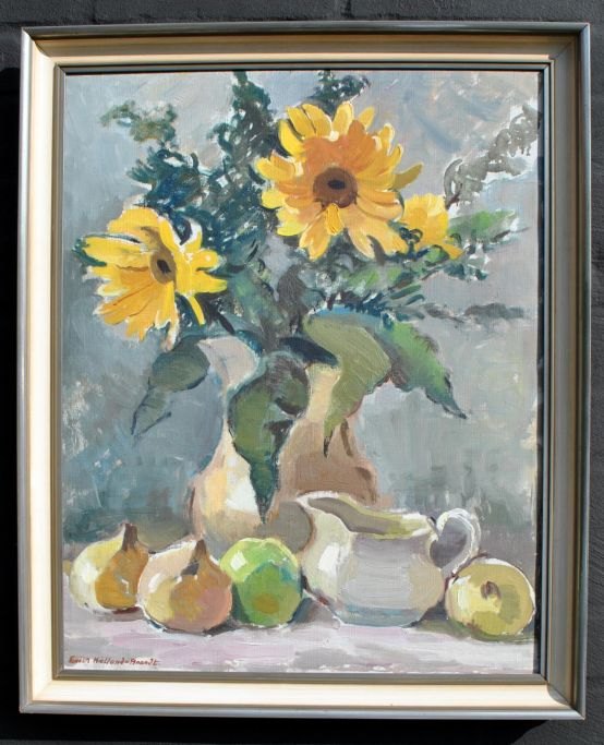 Kielland-Brandt, Edith (1888 - 1965): Opstilling på et bord. Olie på lærred. Signeret. 55 x 44 cm.