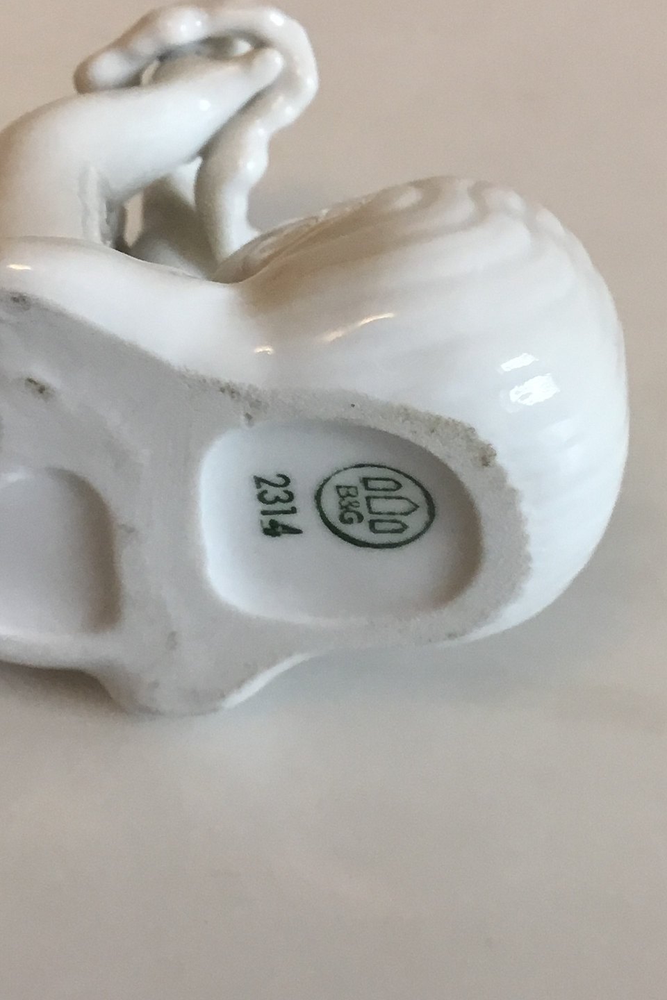 Bing & Grøndahl Blanc de Chine Figur af Liggende havbarn med tang No 2314