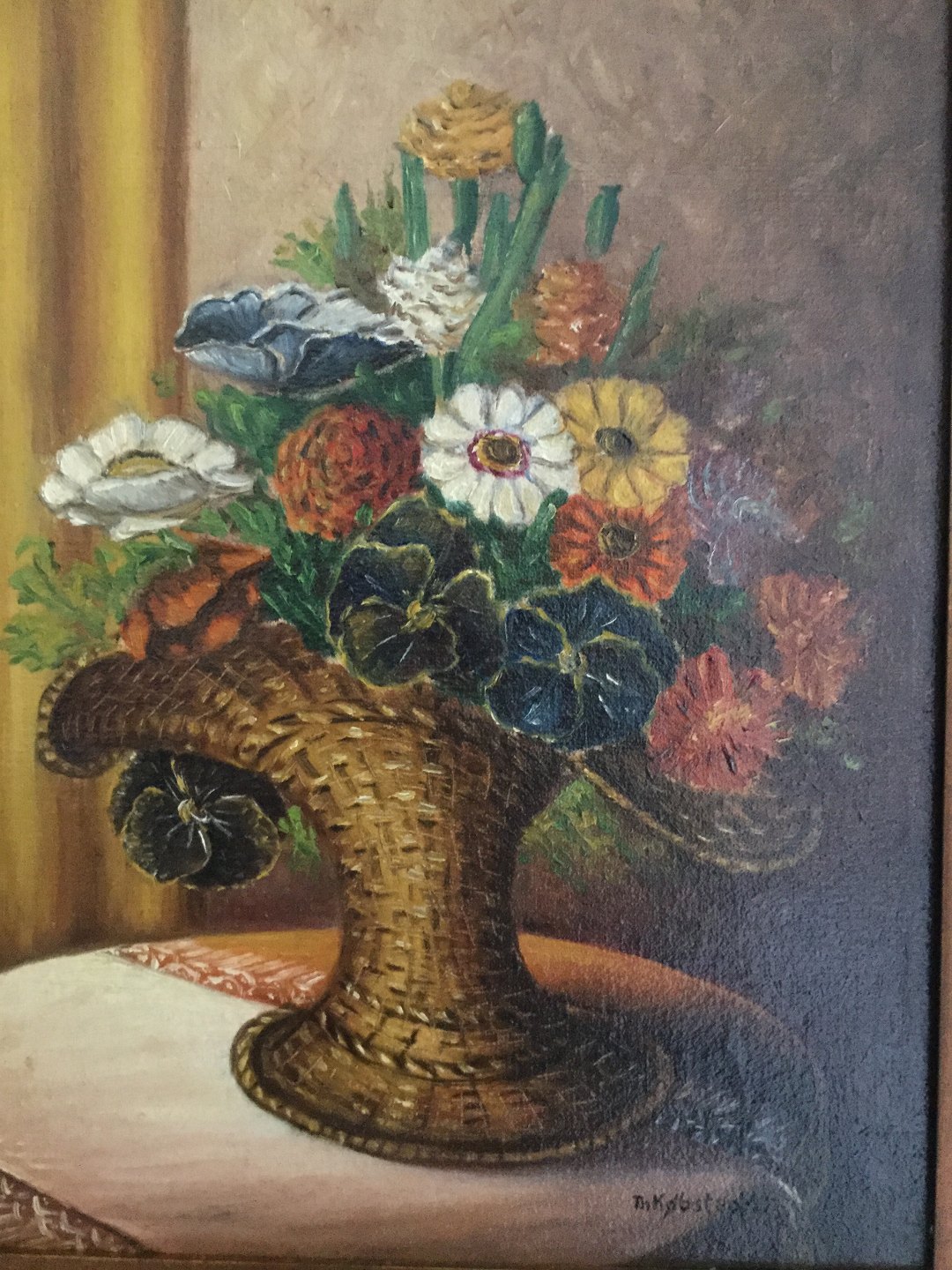 Maleri - Blomster i kurv af Th. Købsted 1915