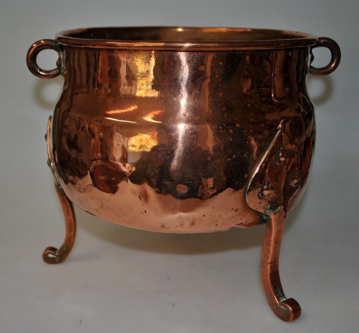 Antik dansk tre bens gryde med håndtag, 19. årh.
