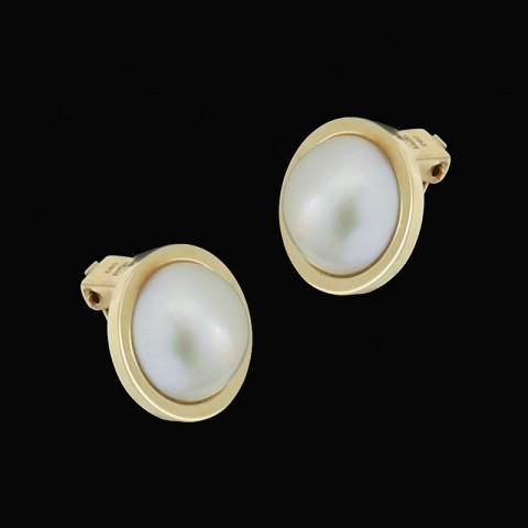 Bent Sørensen. Øreklips i 14k guld med perler.