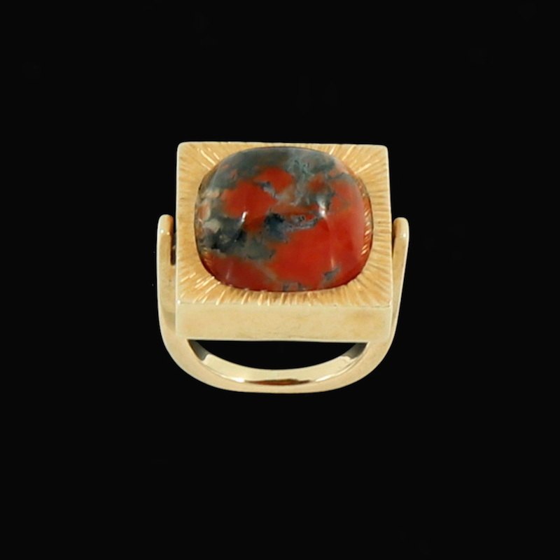 Johan Torp. Ring i 14k guld med mosagat.
